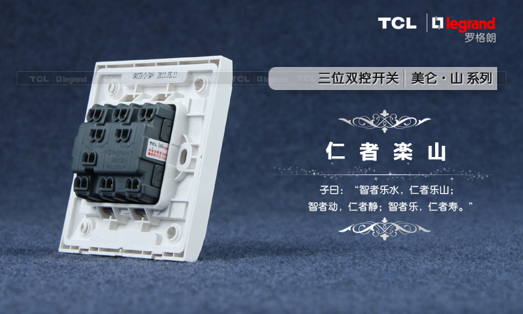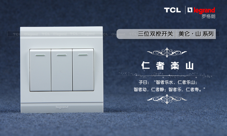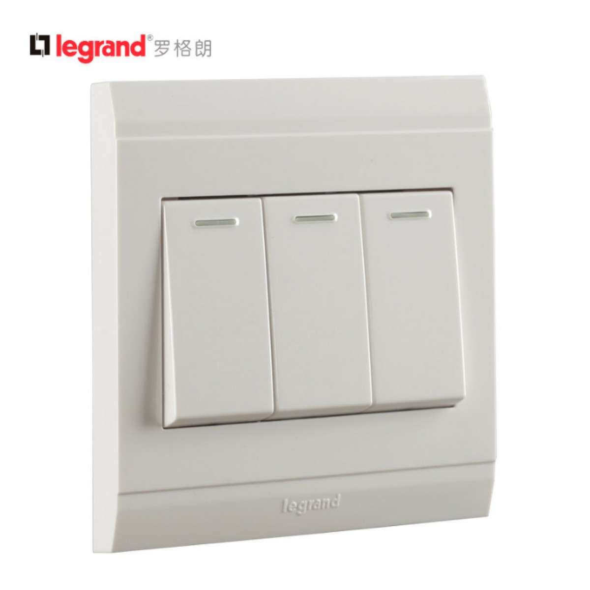 罗格朗 开关插座品牌86型美仑山三开双控开关面板原装