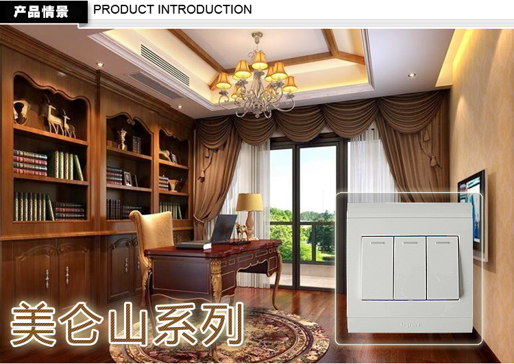 商品名称:罗格朗 开关插座品牌86型美仑山三开双控开关面板原装