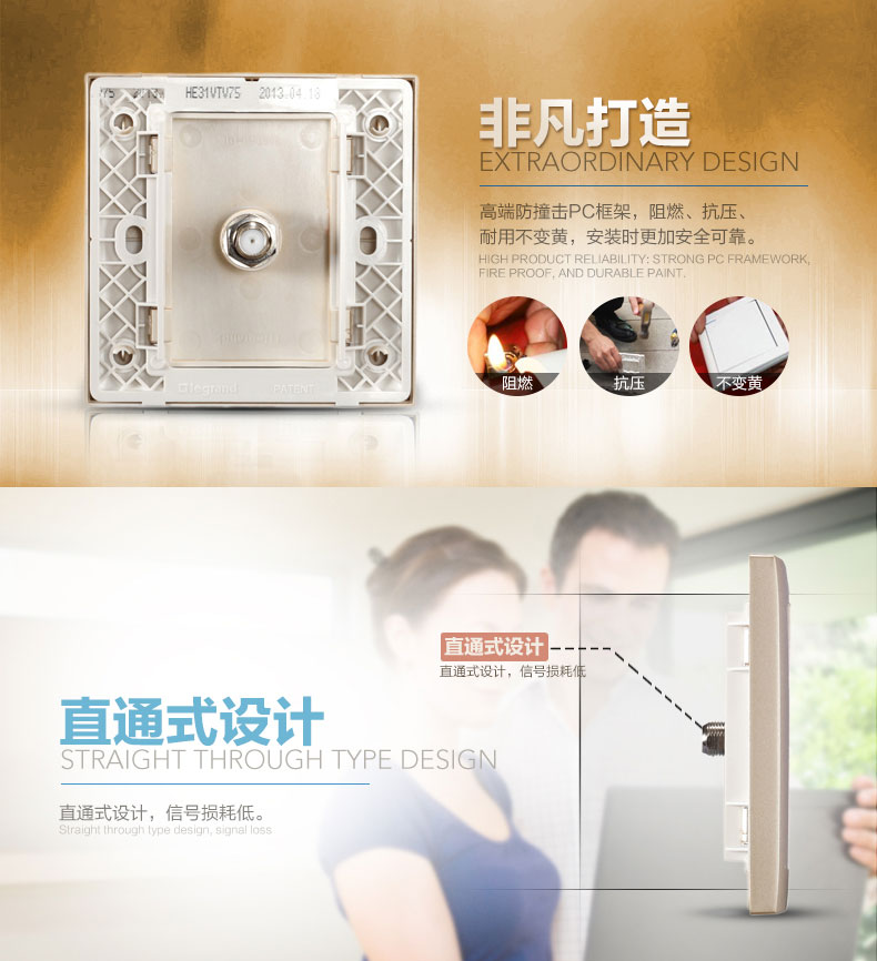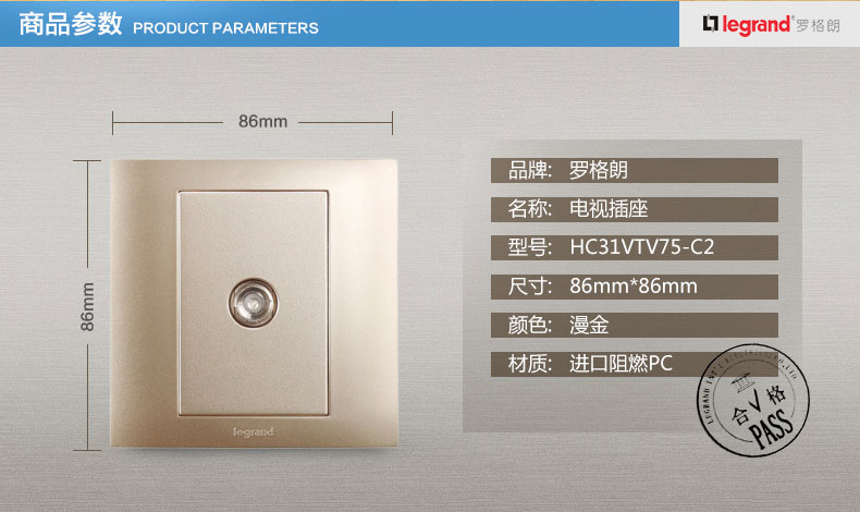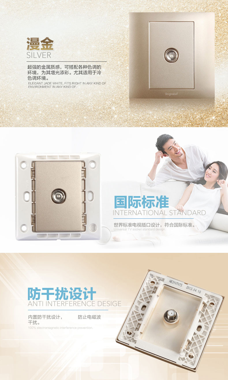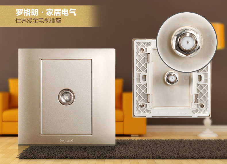 商品名称:罗格朗 开关插座面板 闭路插座 金色有线电视插座 罗格朗有限电视插座