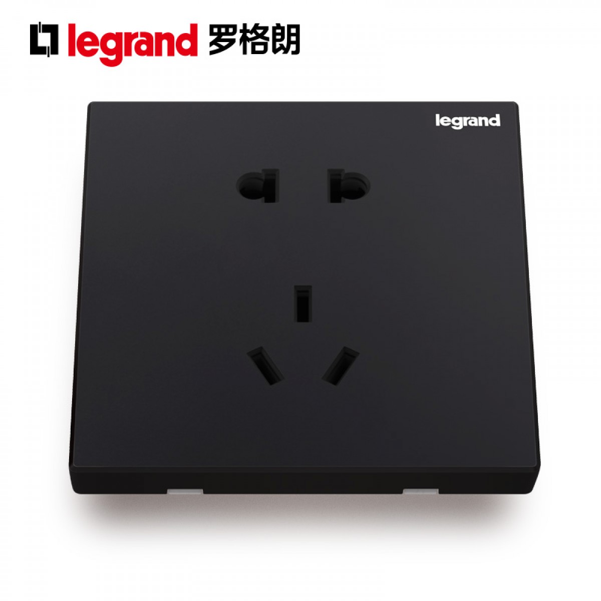 罗格朗 黑色五孔插座开关面板家用86型5孔墙壁电源暗装碳素黑