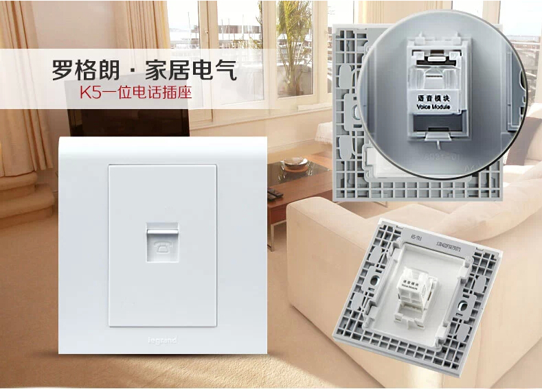 罗格朗 开关插座品牌86型K5雅白一位电话插座面板