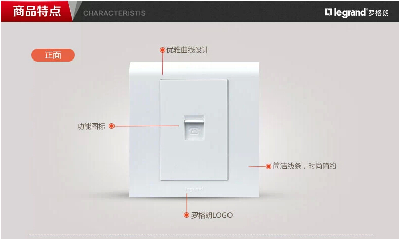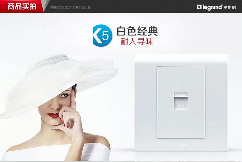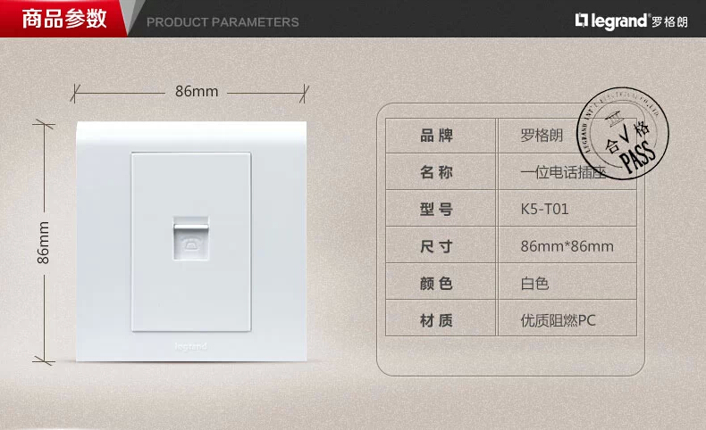 商品名称:罗格朗 开关插座品牌86型K5雅白一位电话插座面板