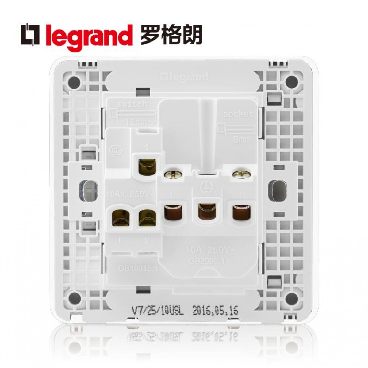 商品名称:罗格朗 开关插座面板冰莹白五孔一开双控面板五孔带双控开关五孔
