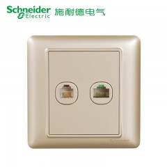 施耐德 开关插座面板 弱电插座 睿意金 二位弱电 香槟金电话电脑