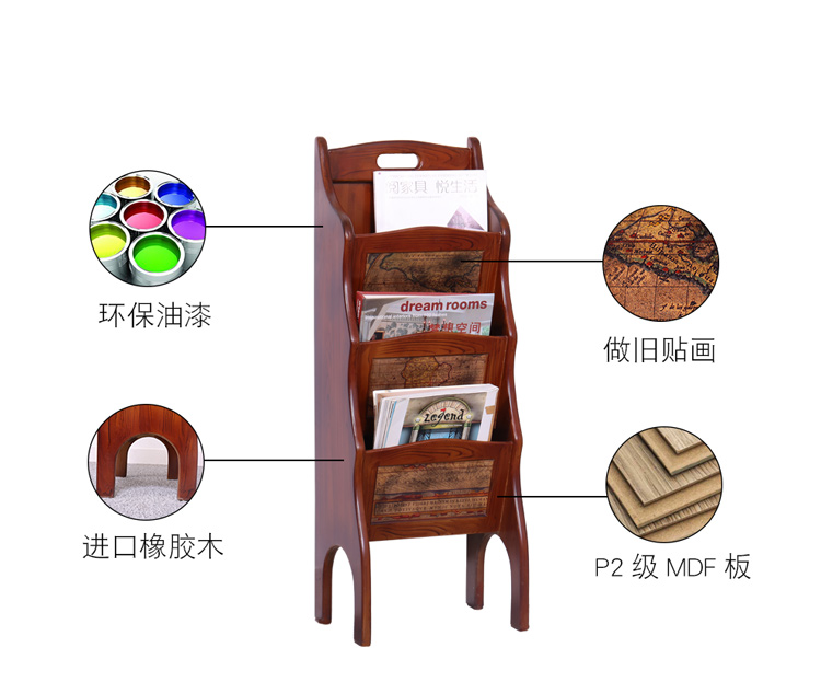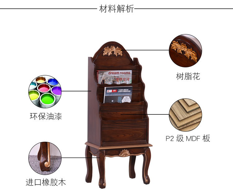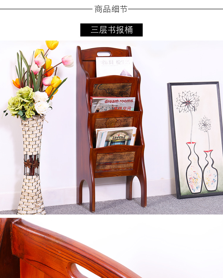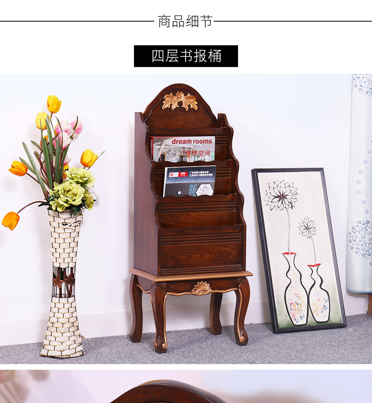 商品名称:国产 书报架复古手绘实木雕花落地报刊杂志桶创意简易置物架