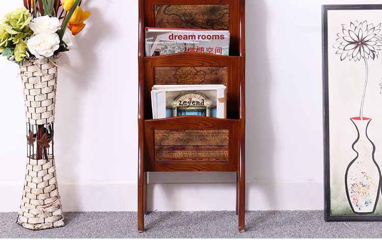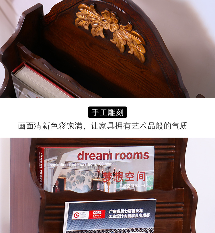 国产 书报架复古手绘实木雕花落地报刊杂志桶创意简易置物架