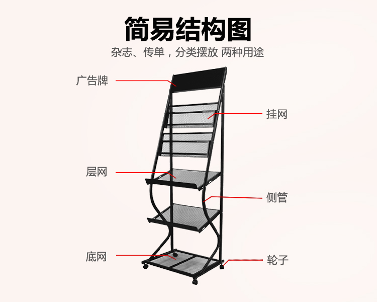 商品名称:国产 SCD双用途资料架杂志架报刊架书报架报纸收纳架办公宣传架落地展示架