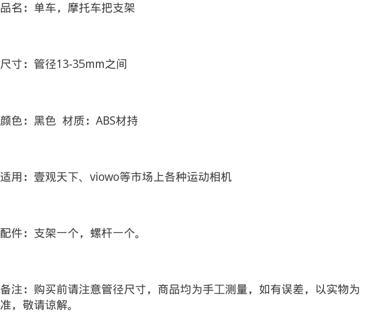 商品名称:国产 配件运动相机骑行摩托车把管径支架原装单车夹