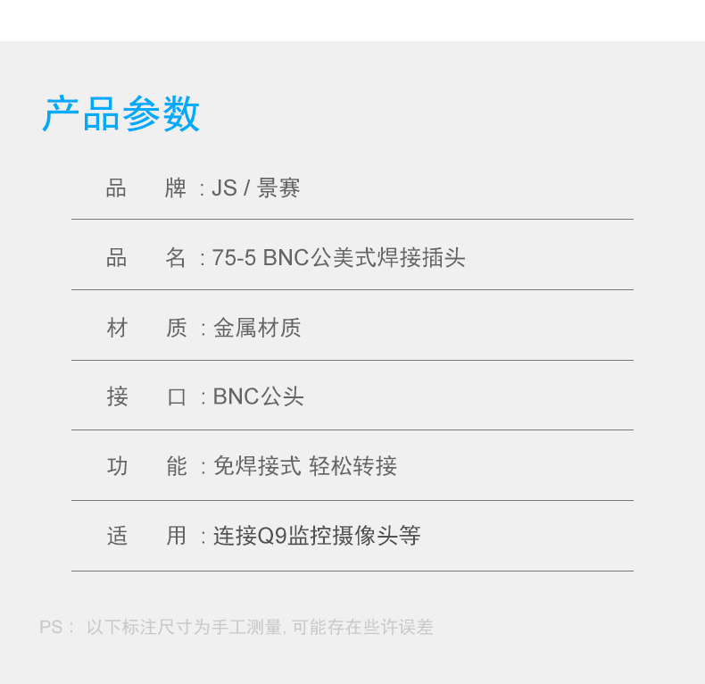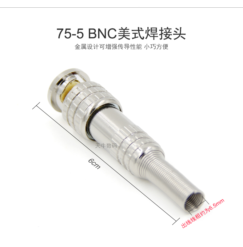 商品名称:国产 JS/ 75-5美式金芯BNC接头 视频头 免焊接Q9头 拧螺丝监控安防摄像机配件sdi视频插头 bnc监控视频转接头