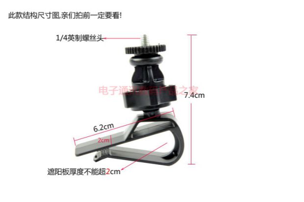 商品名称:国产 1/4牙摄像机 数码照相机DV车载遮阳板行车记录仪支架不当视线支架 GP568