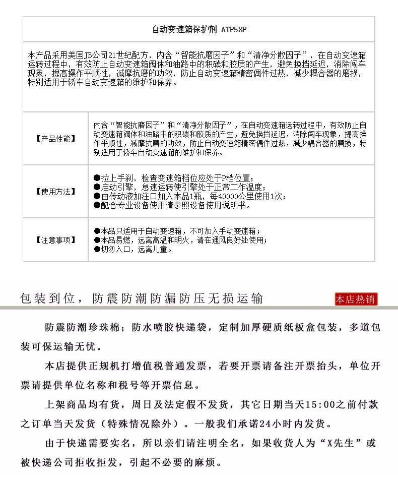 商品名称:JB 新世纪保护神自动变速箱ATF保护剂清洗剂汽车抗磨剂修复剂