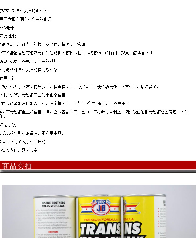 商品名称:JB 自动变速箱ATF保护剂漏油止漏剂汽车引擎养护用品除锈润滑