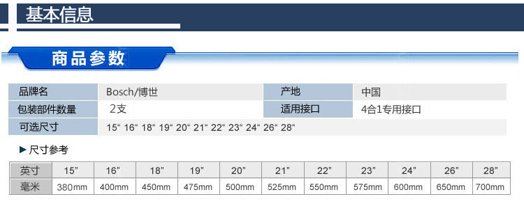 商品名称:博世 四合一接口汽车无骨雨刷 适用于宝马3系新X5赛飞利雅特雨刮器