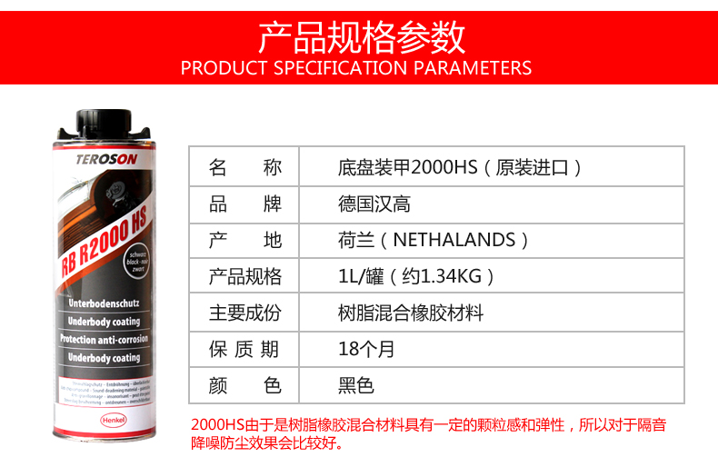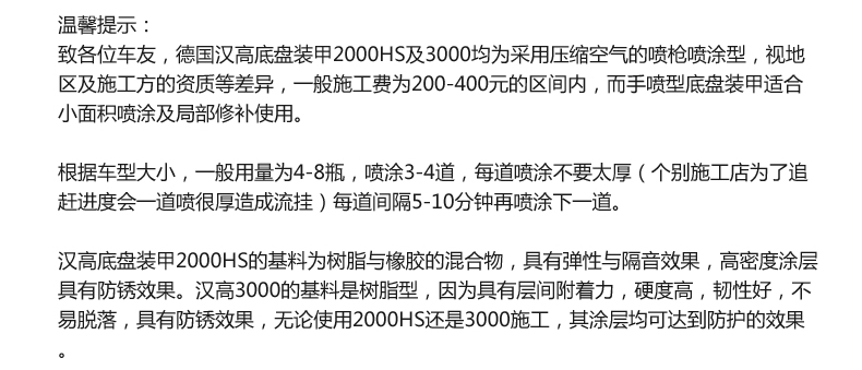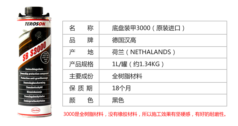 商品名称:汉高 底盘装甲3000纯树脂4瓶+2000橡胶树脂2瓶护车套装防锈漆