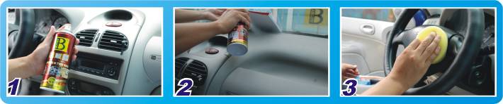 1、使用前请先将本品摇匀,直立罐身,距离仪表台表面15—20厘米均匀喷射;