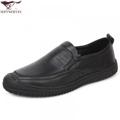 七匹狼 男鞋新款休闲男士头层牛皮时尚耐磨边缘线缝男士皮鞋子