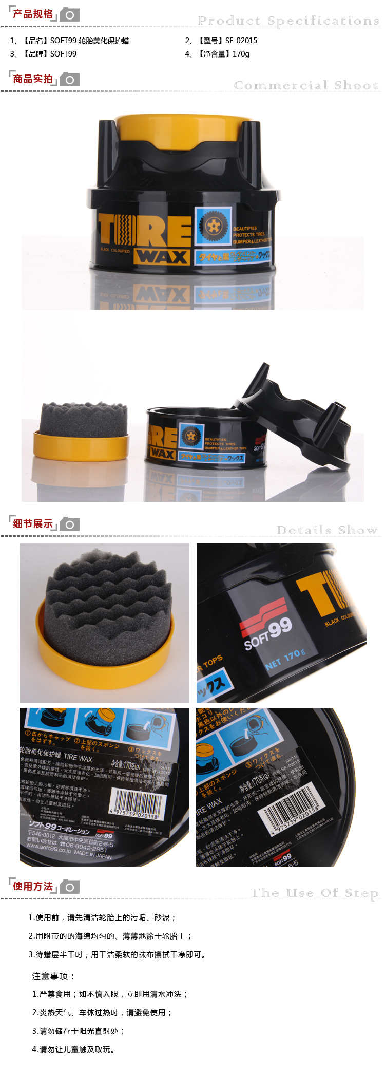 商品名称:SOFT99 轮胎美化保护蜡 SF-02015