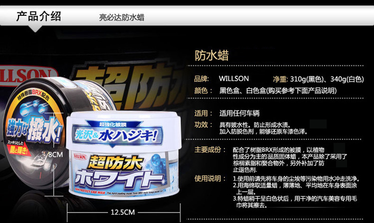 商品名称:Willson 车蜡 防水蜡 汽车蜡 车漆驱水蜡 防水汽车蜡 汽车蜡