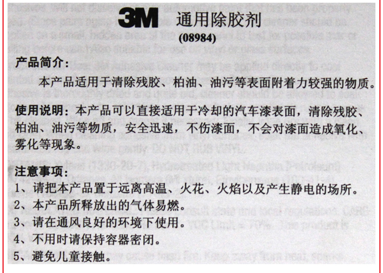 商品名称:3M 通用除胶剂 去胶剂 除蜡剂 不干胶清洗剂 柏油清洗剂 08984