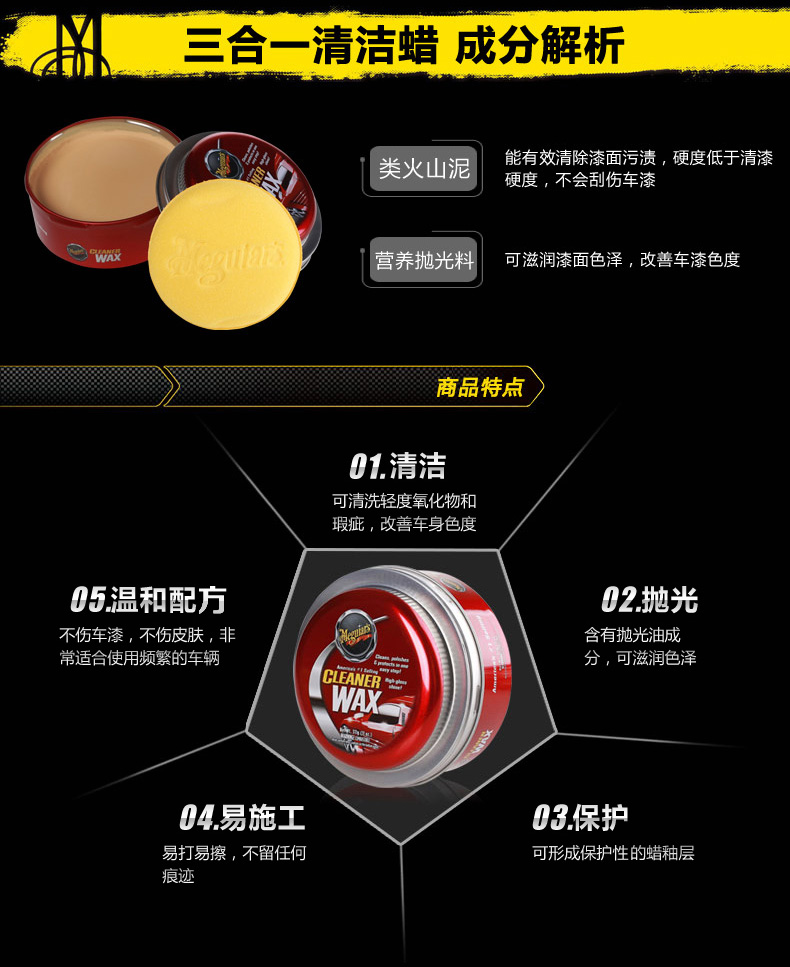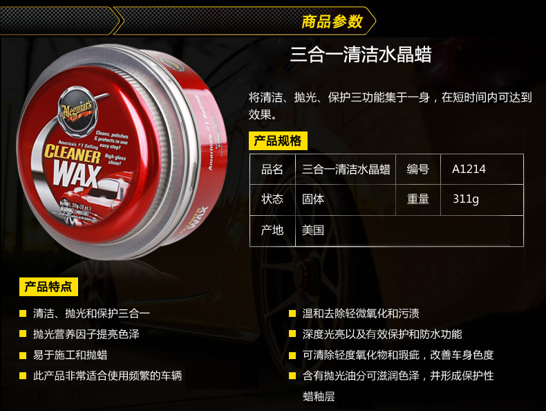 商品名称:3M 车蜡三合一水晶蜡新车汽车打蜡清洁上光防护蜡进口A1214