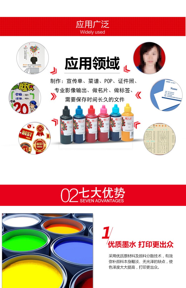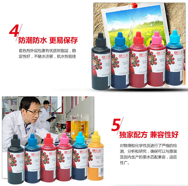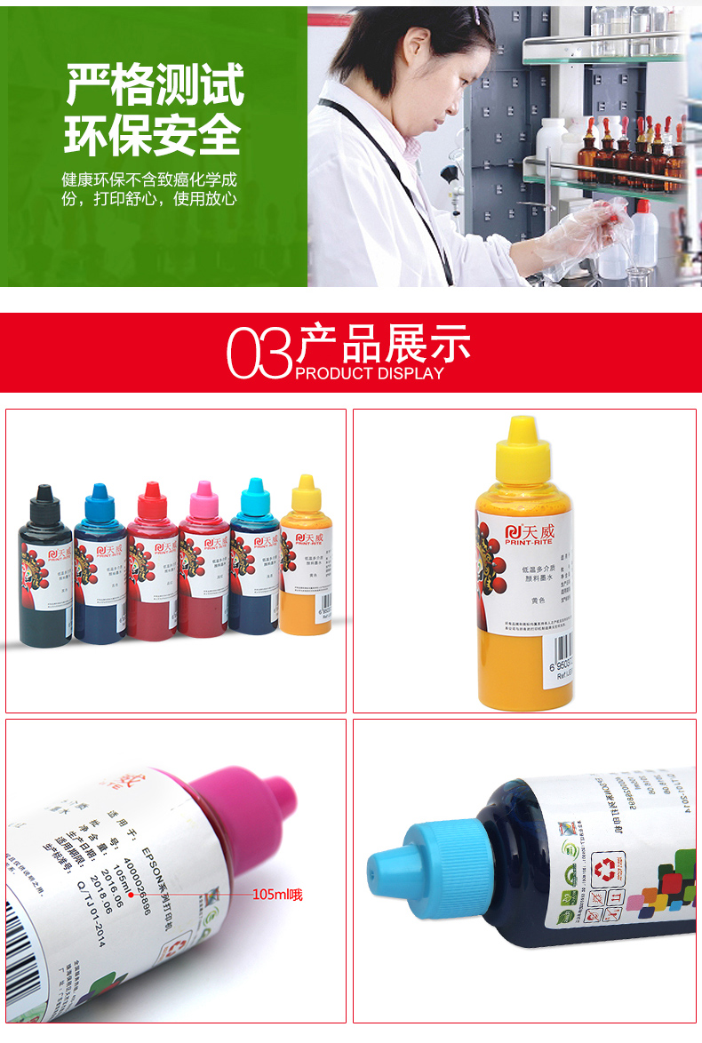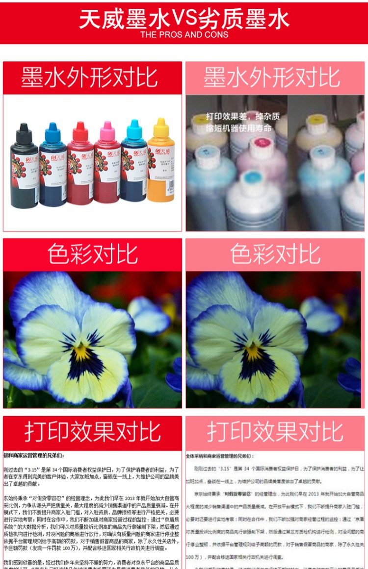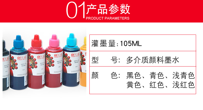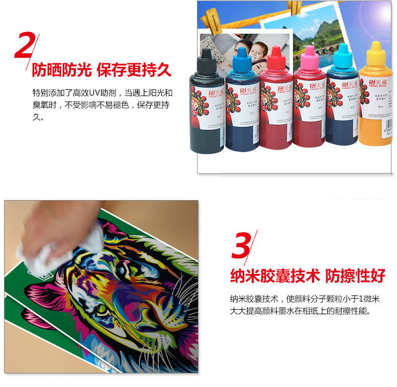 商品名称:天威 墨水适用爱普生墨水低温铜版纸墨水不干胶墨水直印墨水颜料墨水免加热耐水耐晒