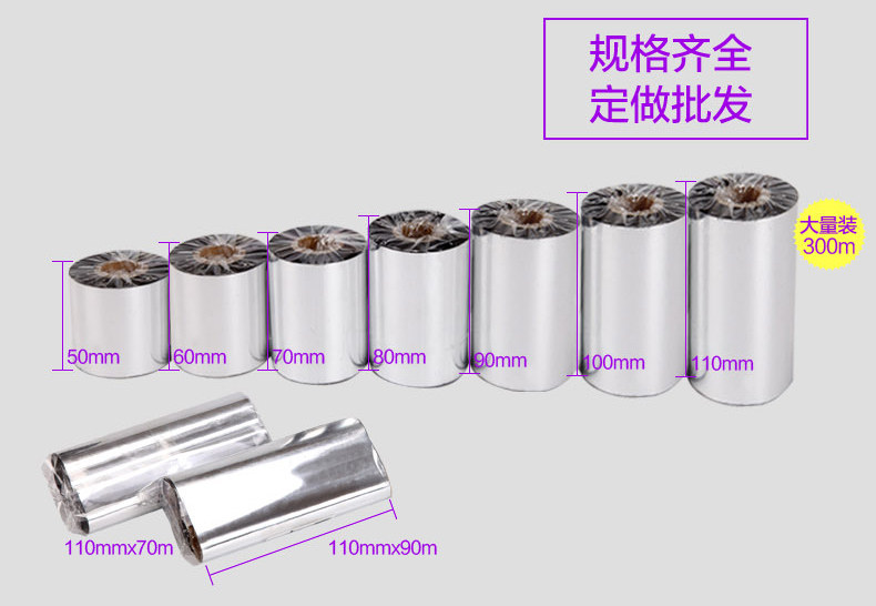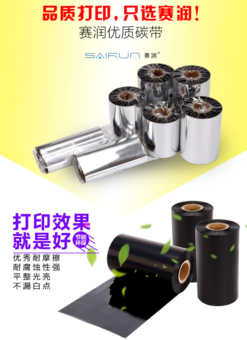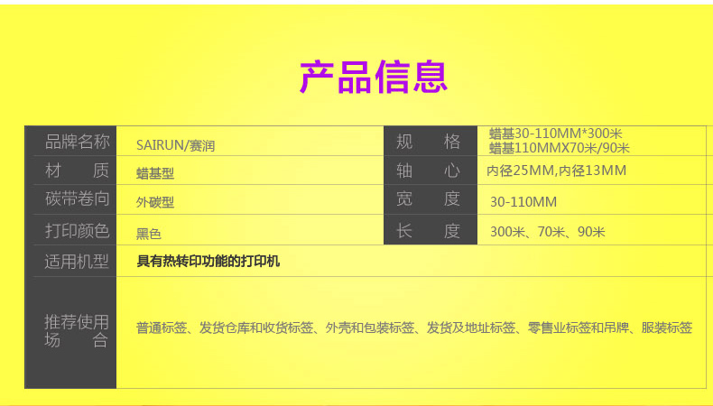 商品名称:赛润 适用混合基全树脂蜡基碳带40 50 70 80 90 110mm 300m条码打印机标签
