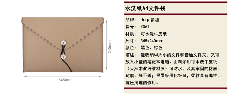 商品名称:国产 水洗牛皮纸A4文件袋按扣 文件套毛毡档案袋创意资料袋公文套潮