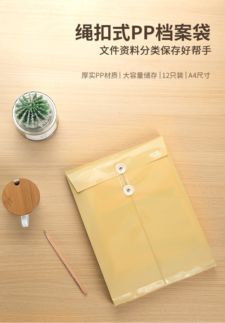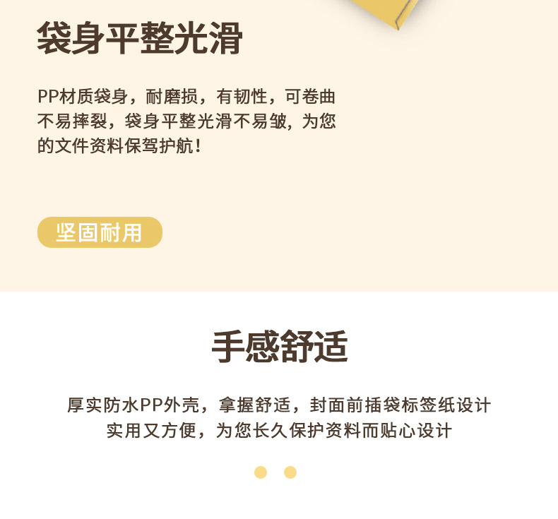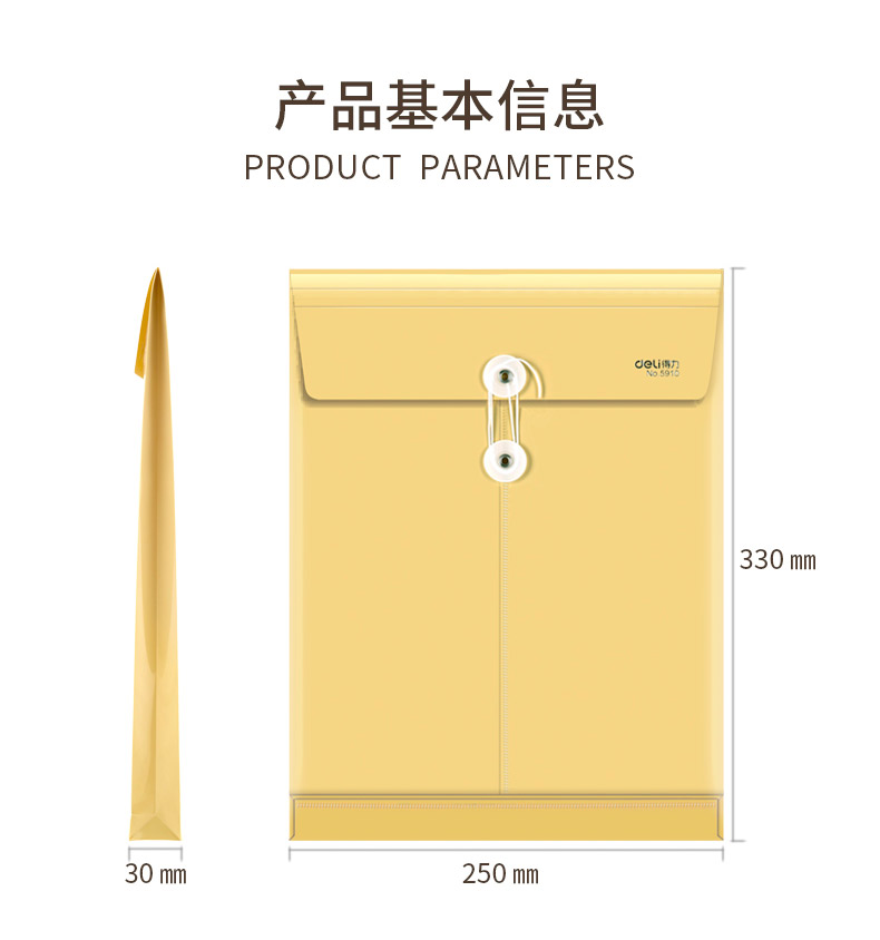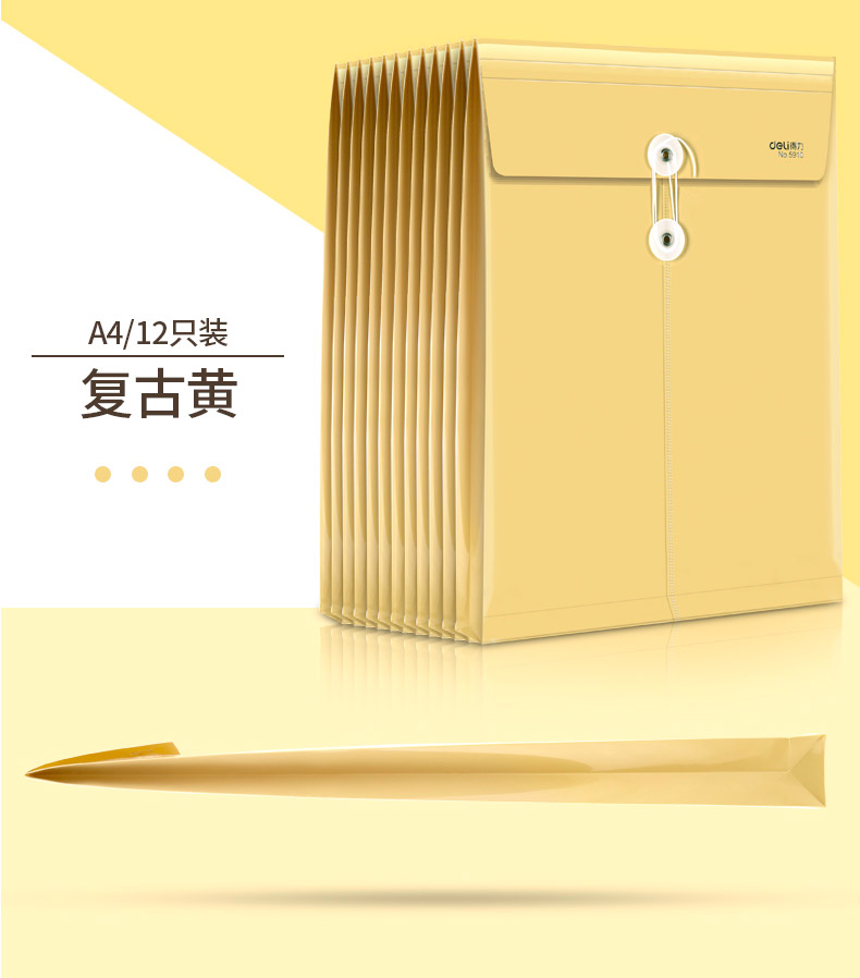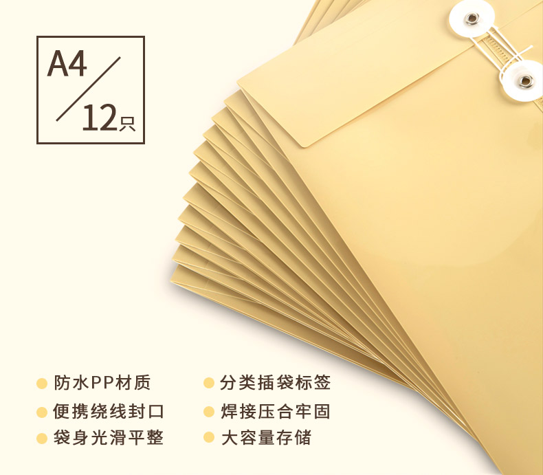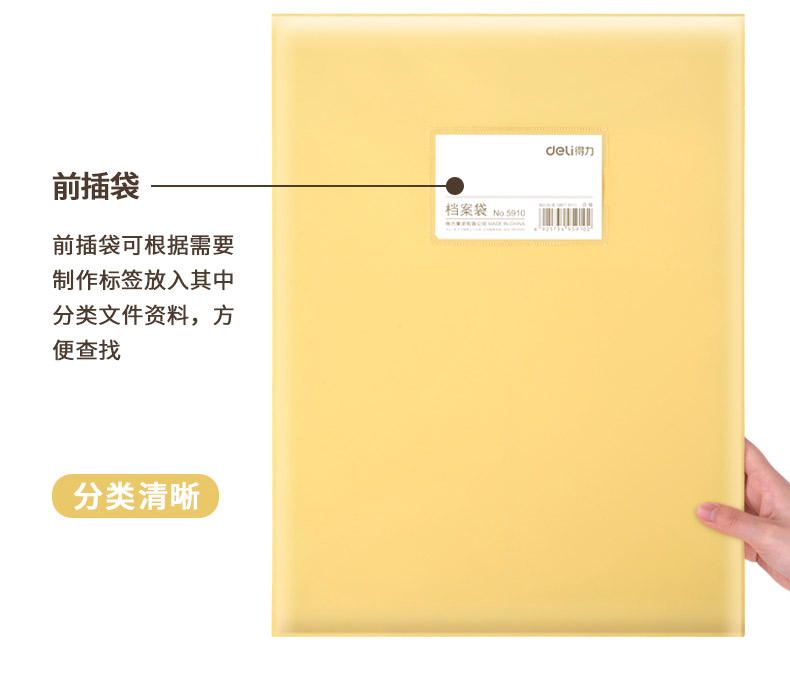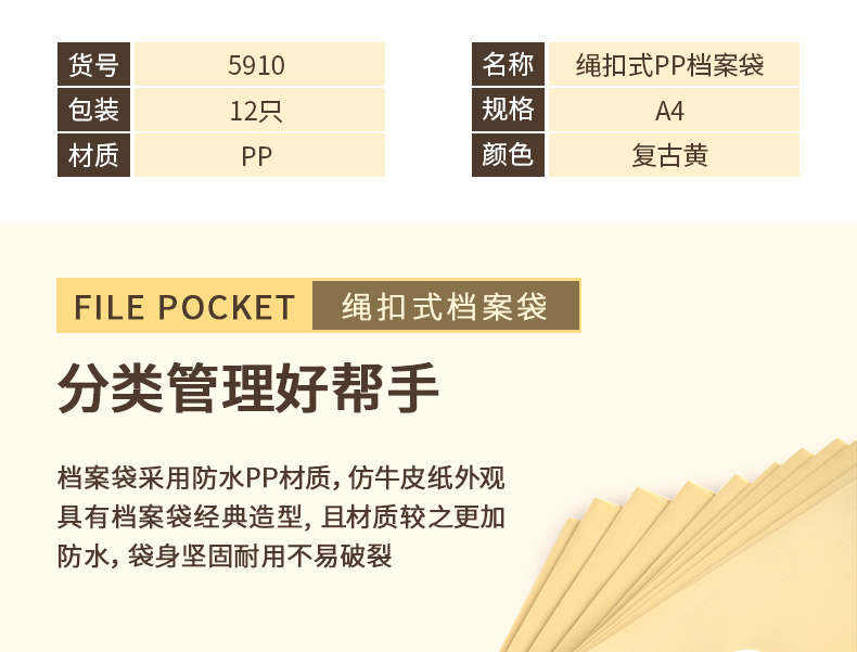 商品名称:得力 档案袋5910防水PP材质宽底带标签文件防潮耐用a4文件袋牛皮纸色档案袋 塑料PP文件袋