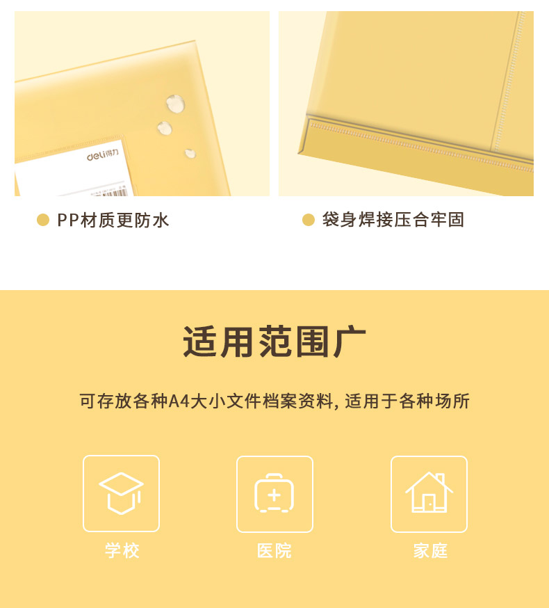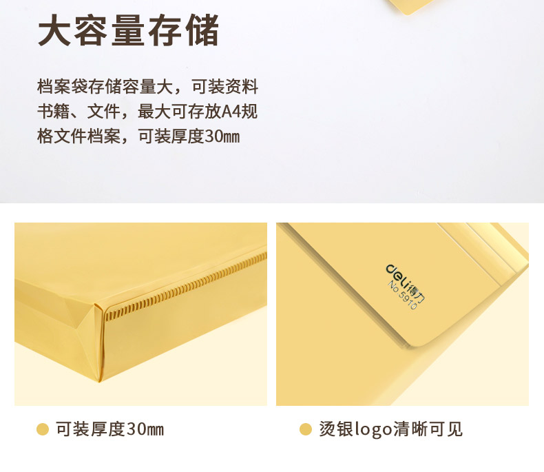 得力 档案袋5910防水PP材质宽底带标签文件防潮耐用a4文件袋牛皮纸色档案袋 塑料PP文件袋