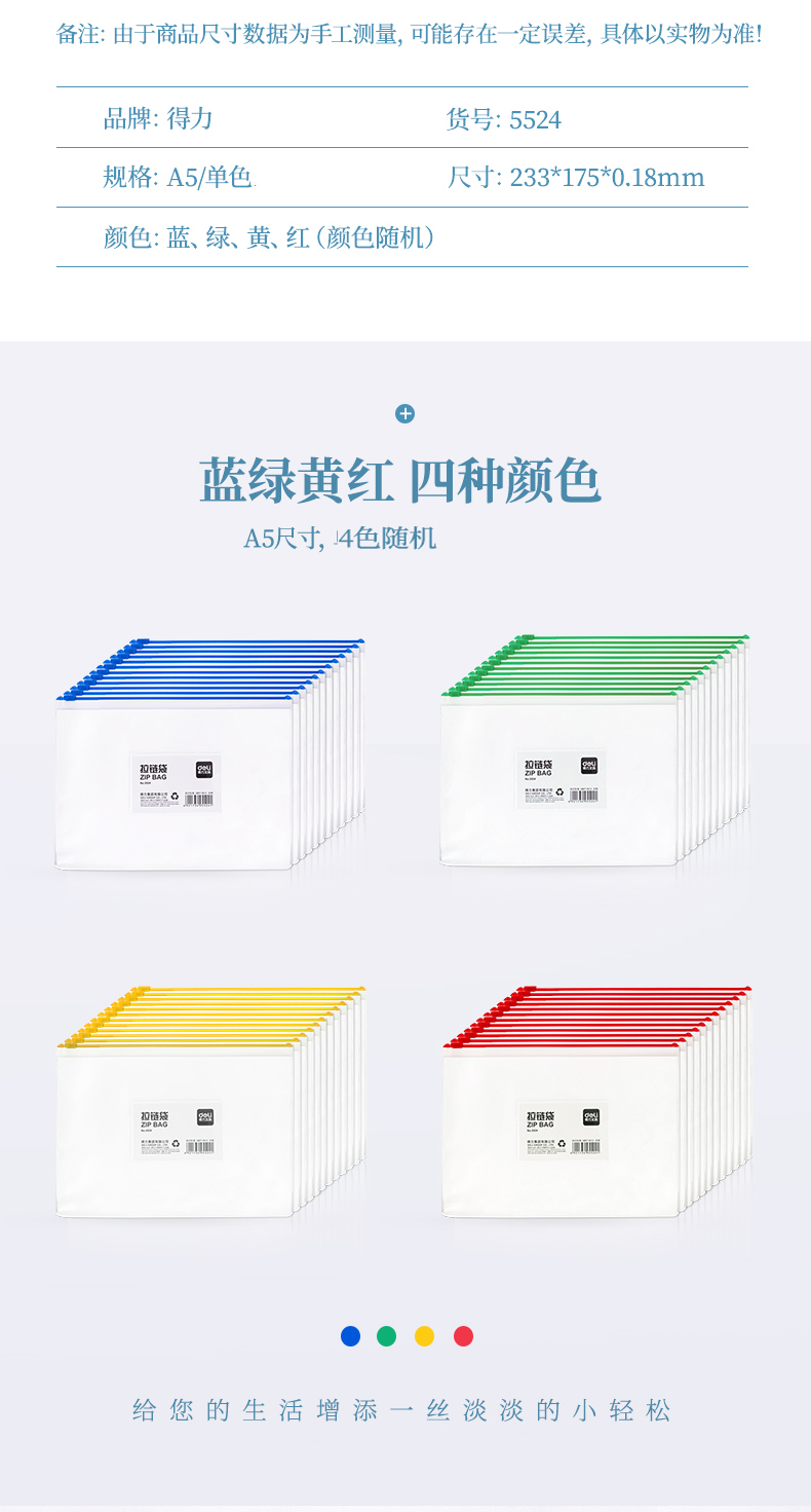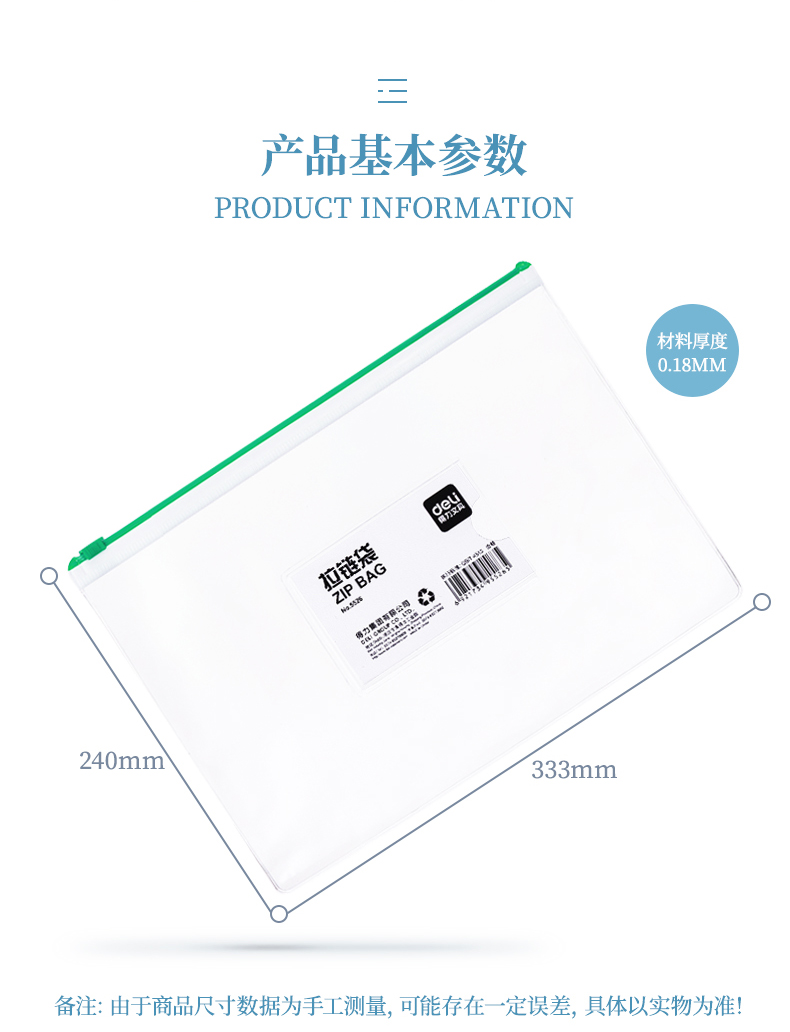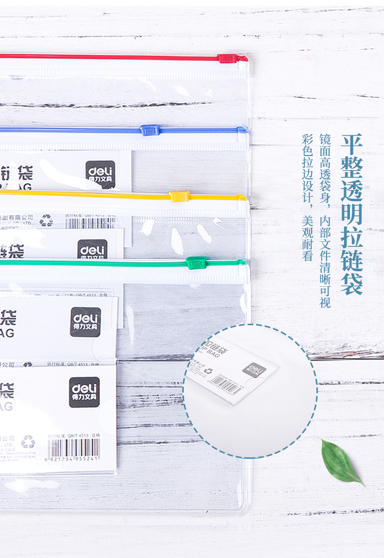 商品名称:得力 透明拉链袋 A5拉边袋塑料文件袋5524资料袋 透明文件袋5526塑料拉边袋
