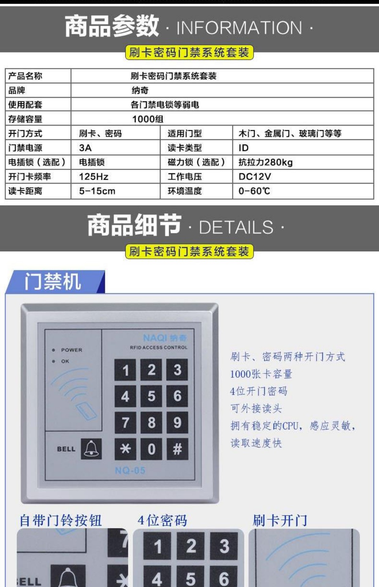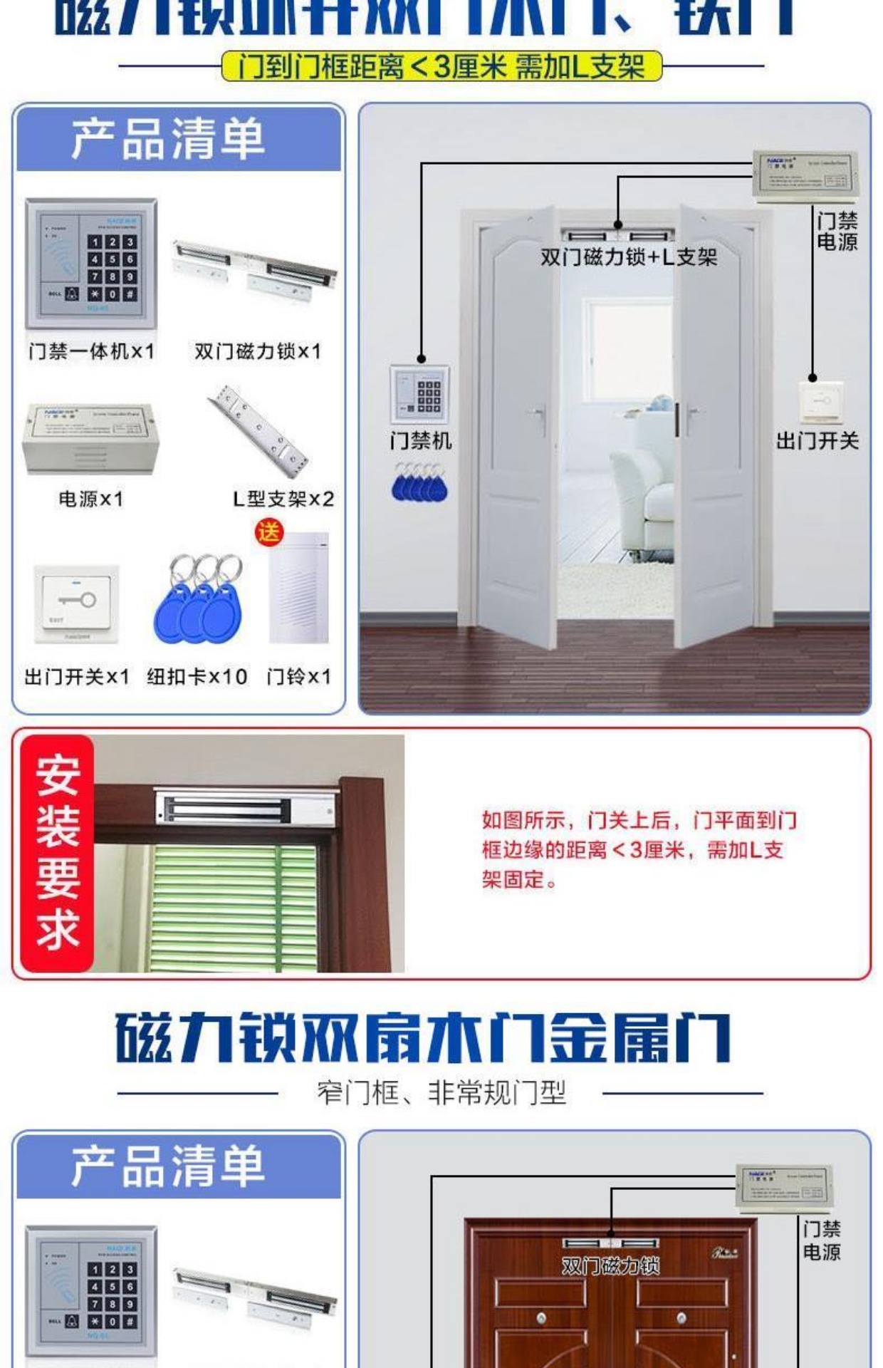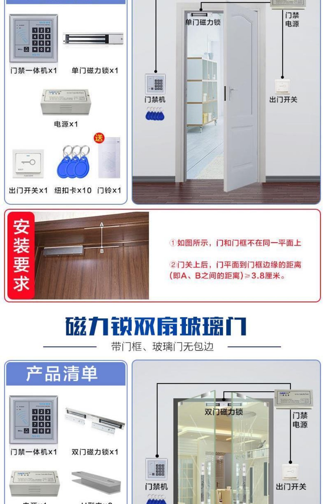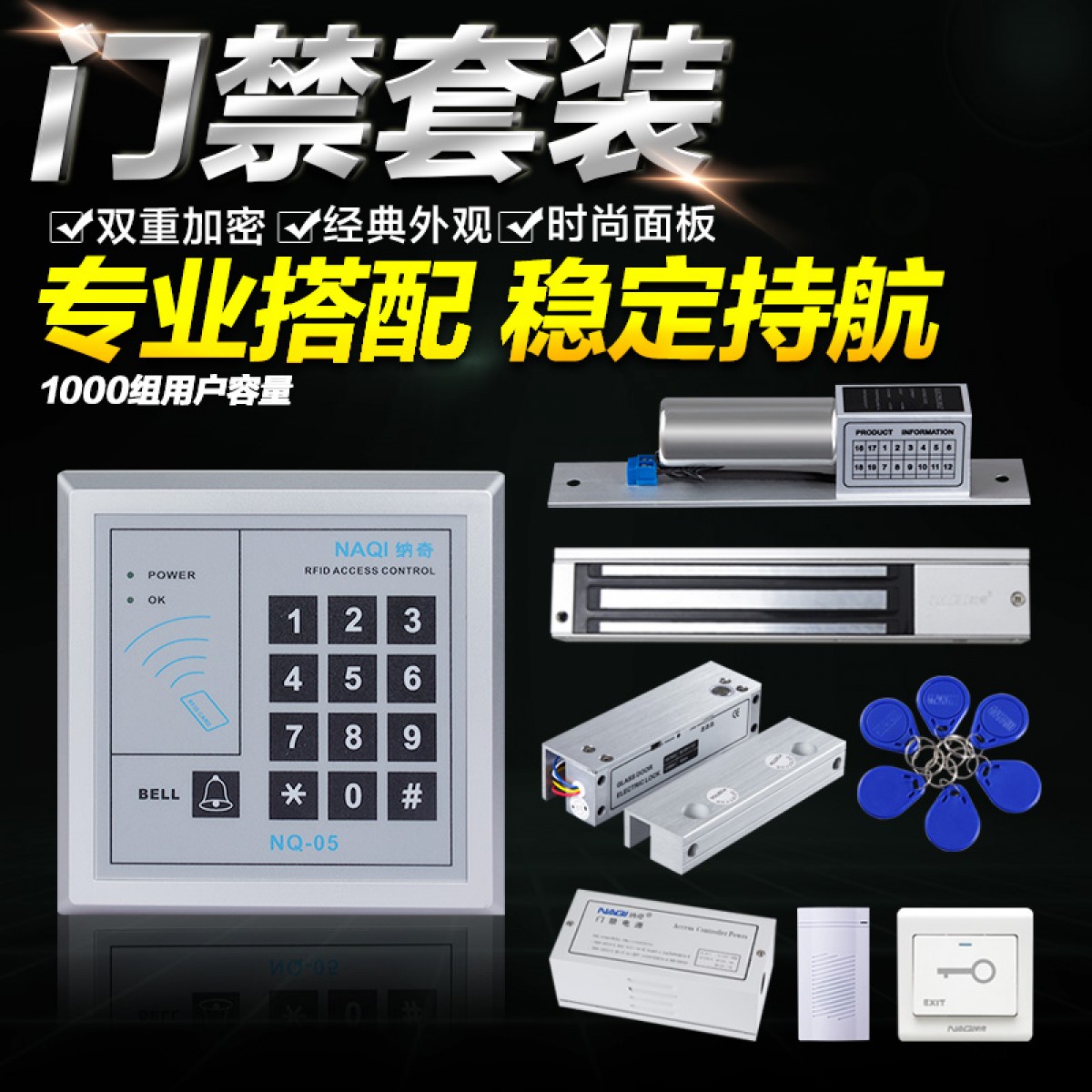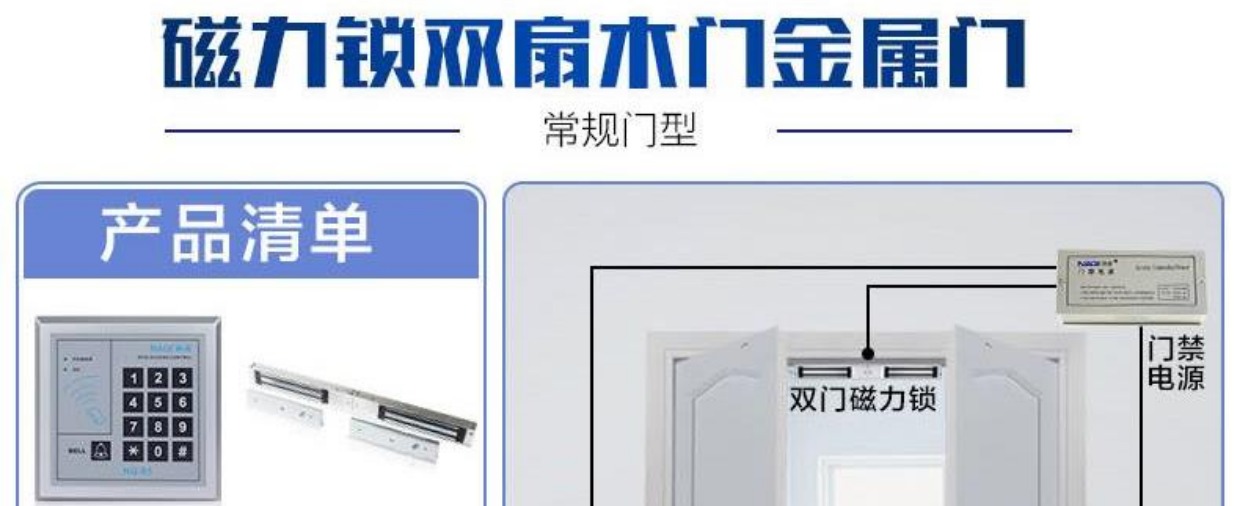 商品名称:纳奇 电子门禁系统套装玻璃门铁门双门电磁锁磁力锁刷卡门禁锁一体机
