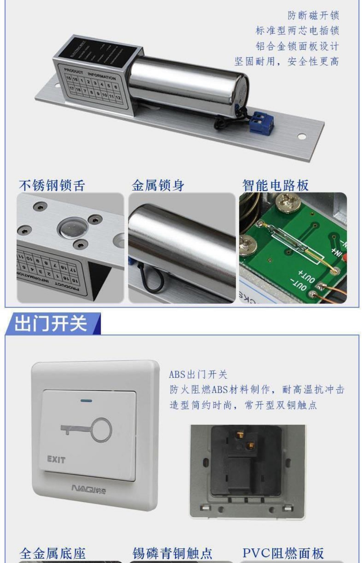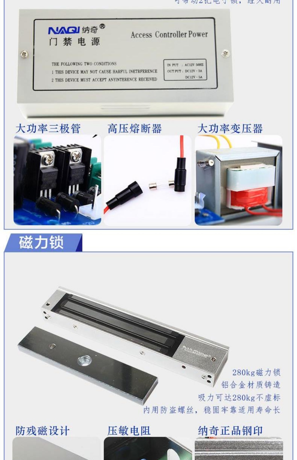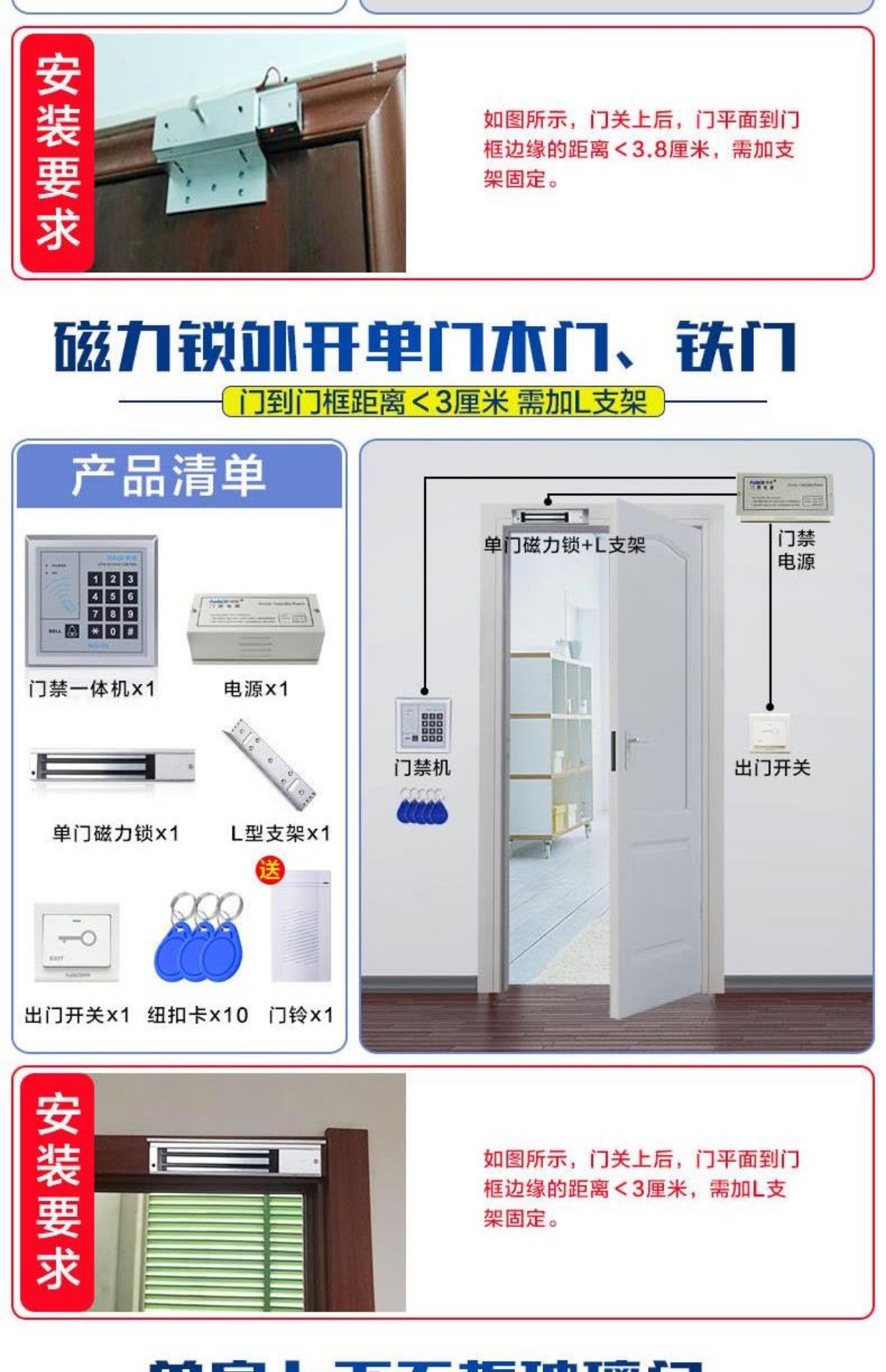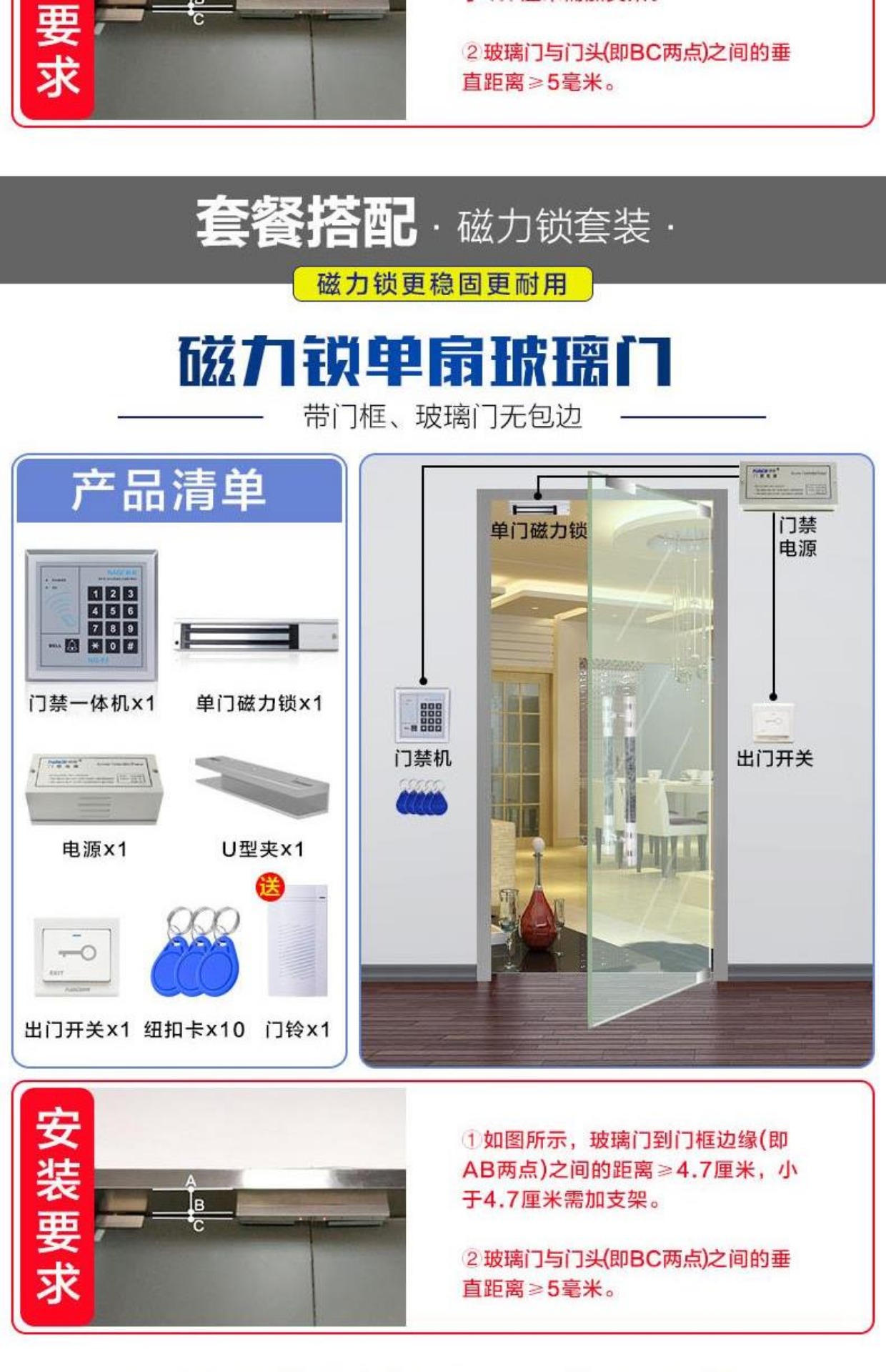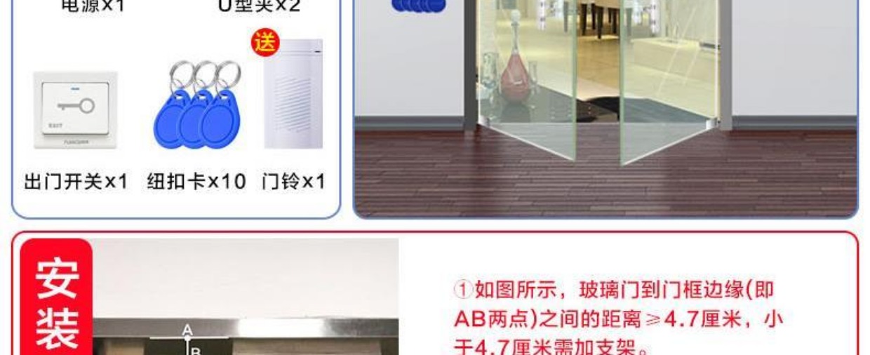 商品名称:纳奇 电子门禁系统套装玻璃门铁门双门电磁锁磁力锁刷卡门禁锁一体机
