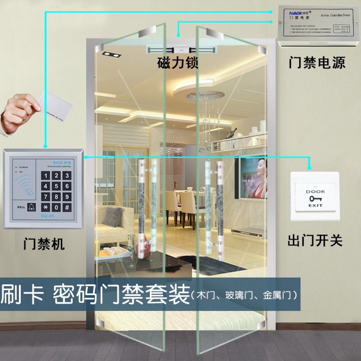 纳奇 电子门禁系统套装玻璃门铁门双门电磁锁磁力锁刷卡门禁锁一体机