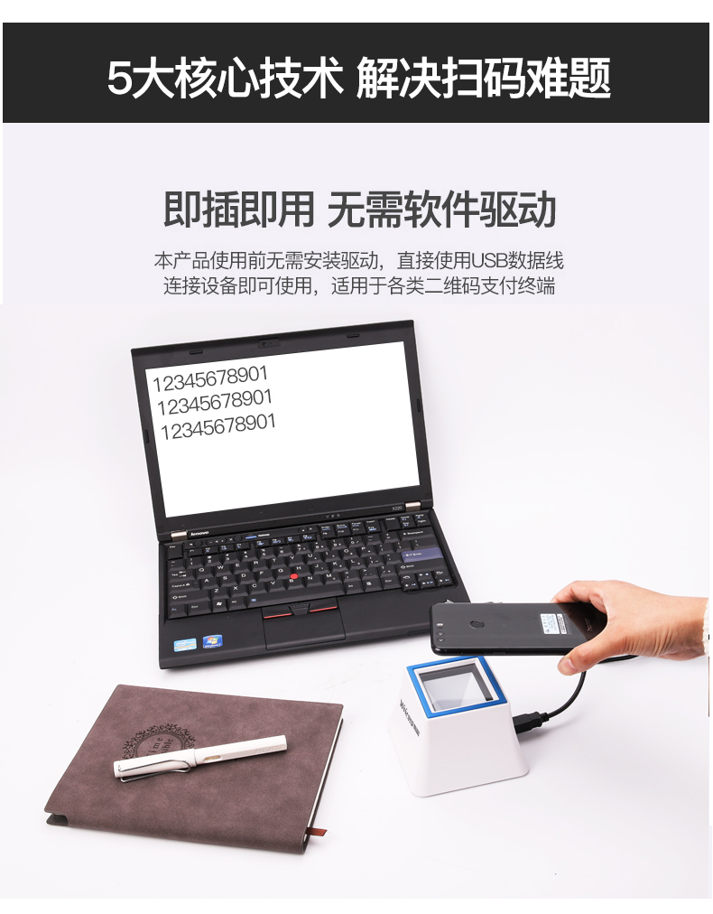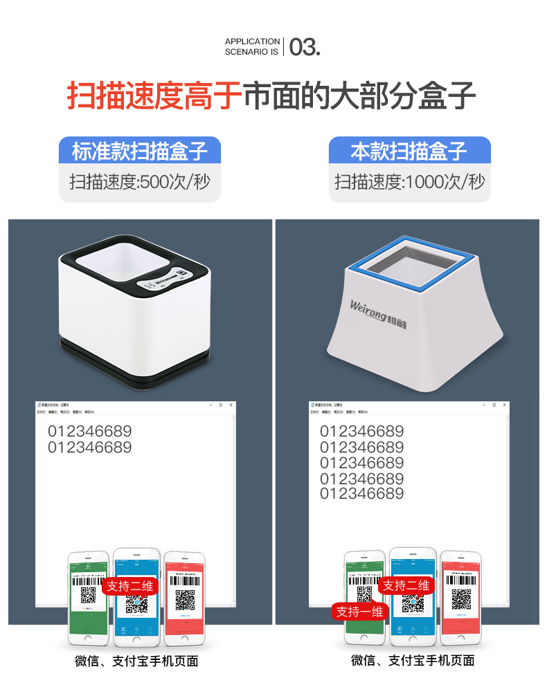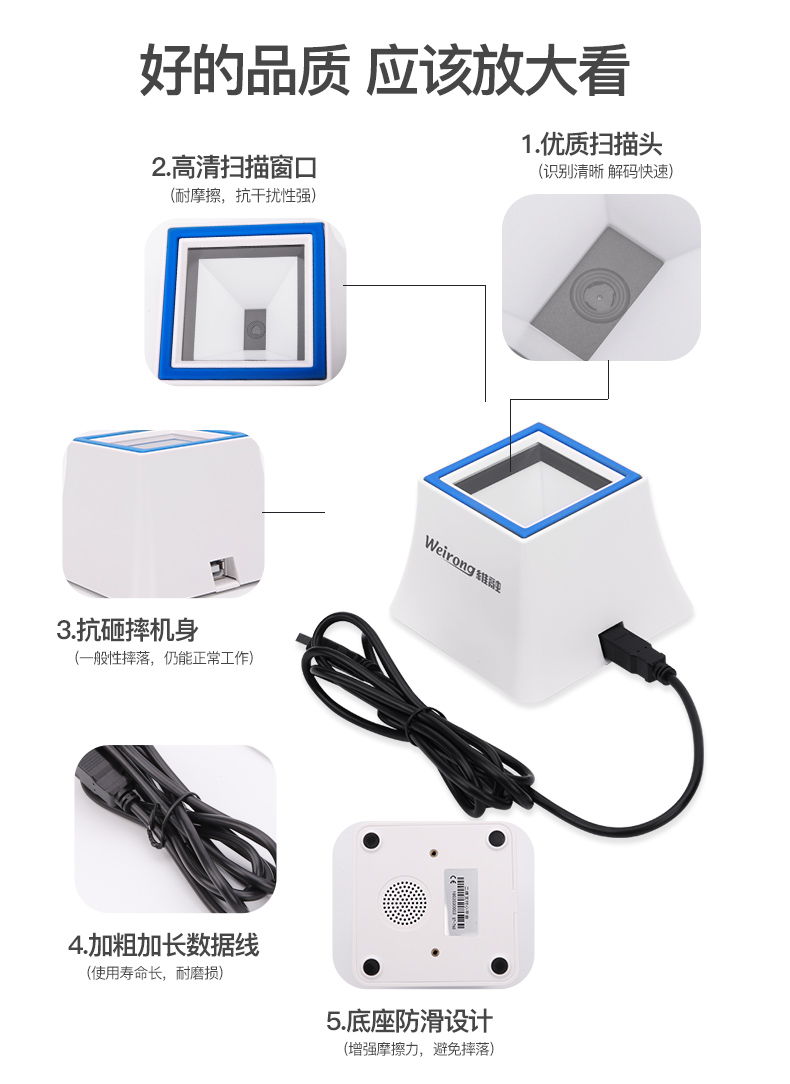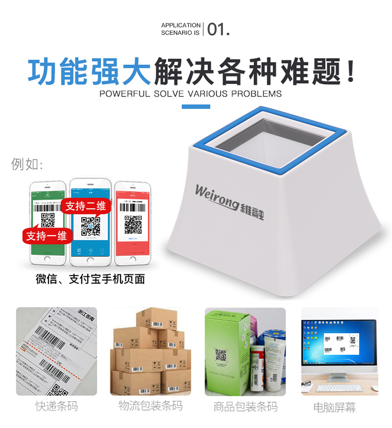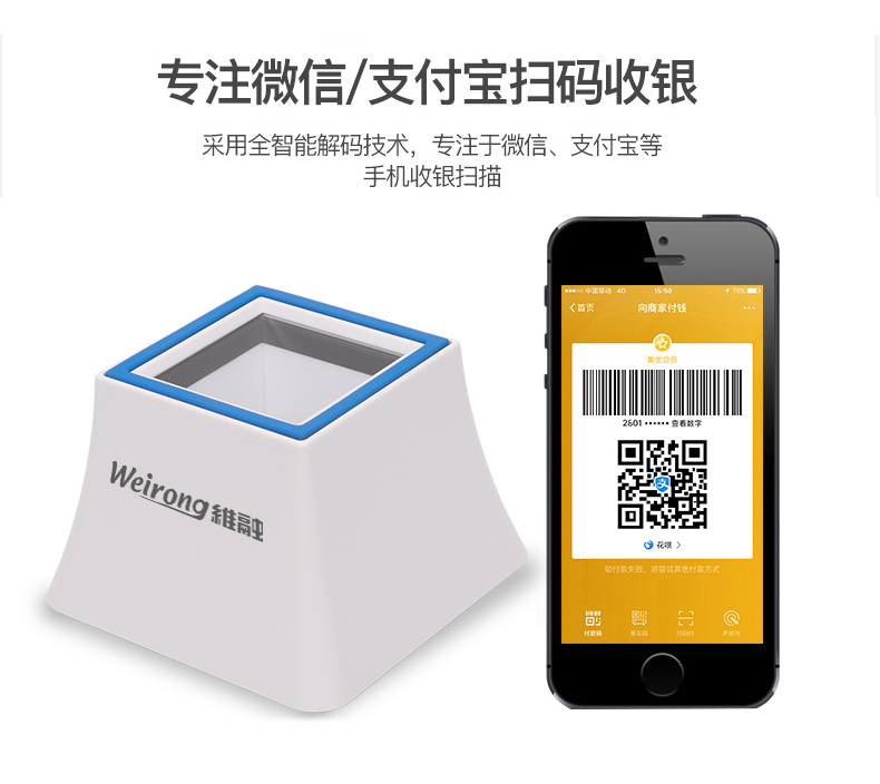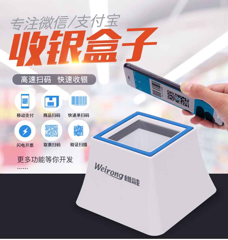 维融 二维码扫描器扫码器扫描平台付款器支付宝微信收款机收银盒子