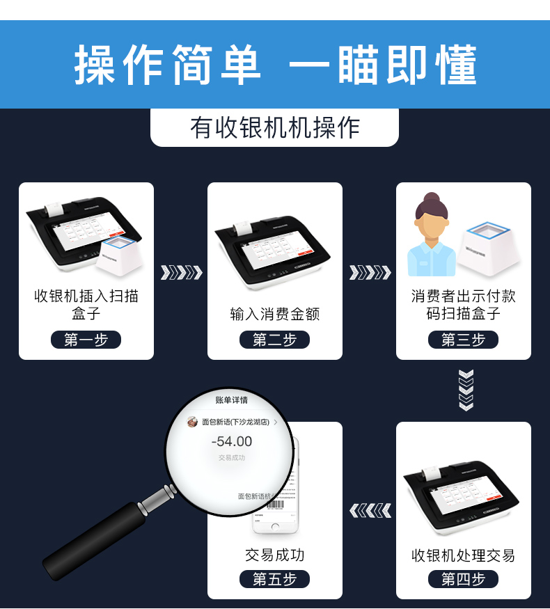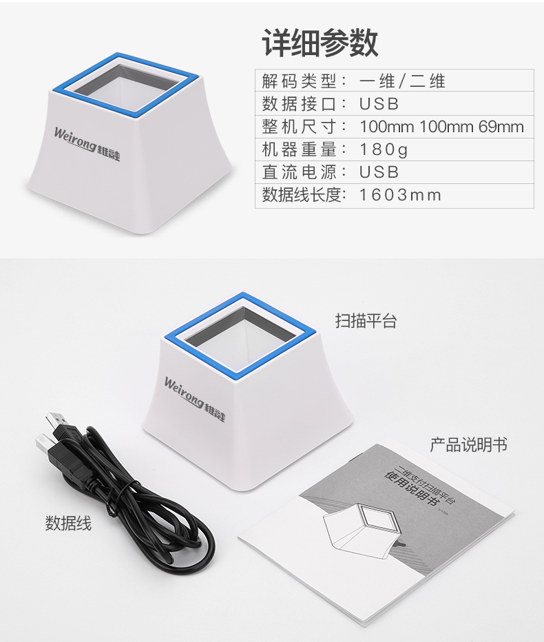 商品名称:维融 二维码扫描器扫码器扫描平台付款器支付宝微信收款机收银盒子