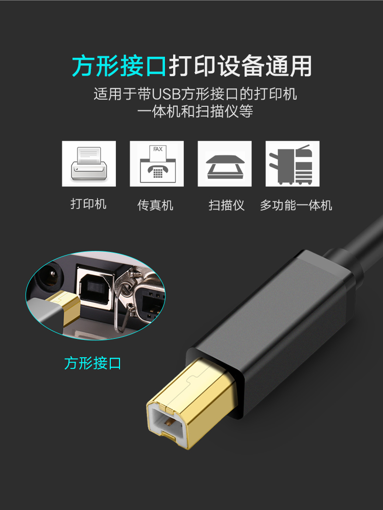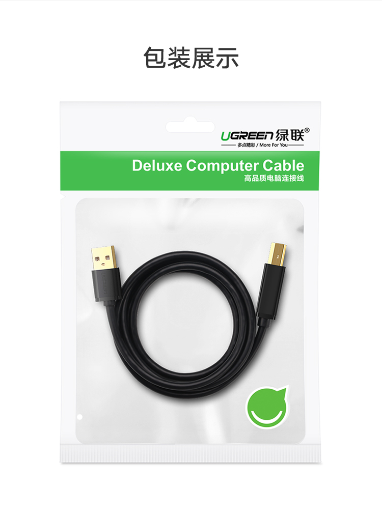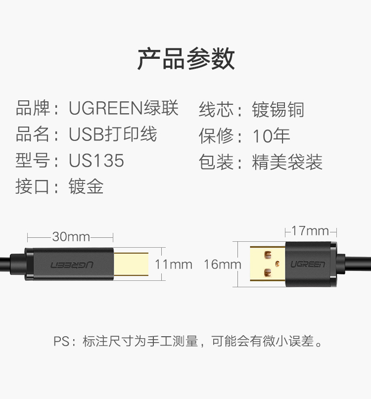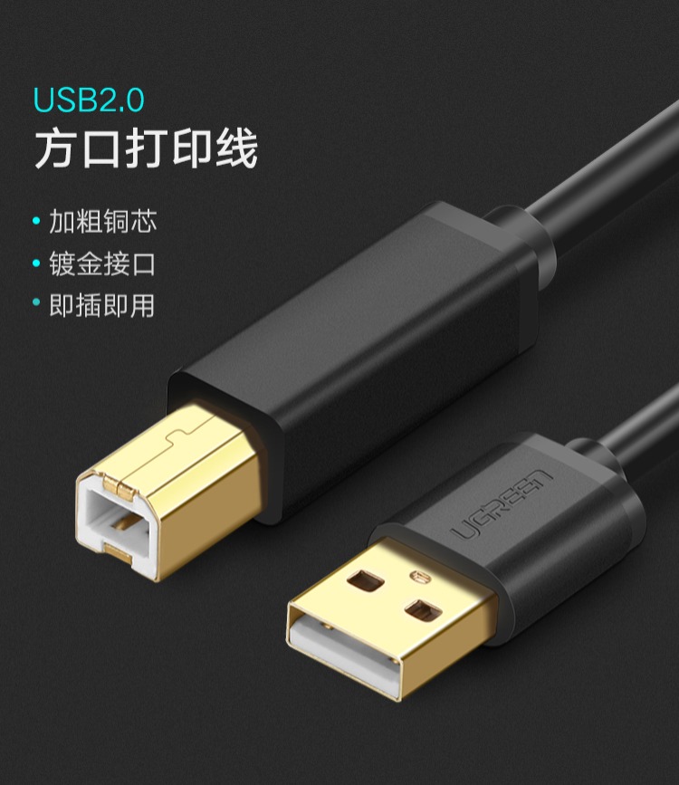 商品名称:绿联 打印机数据线佳能惠普爱普生通用连接线电脑usb延长线加长5m US135