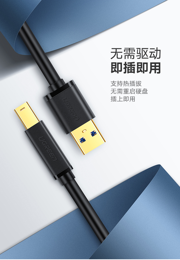 商品名称:绿联 USB3.0打印机数据线A公对B公镀金方口硬盘盒数据线连接线2米 US210
