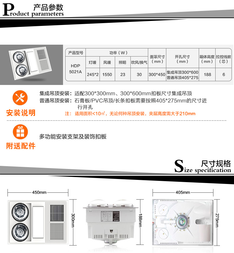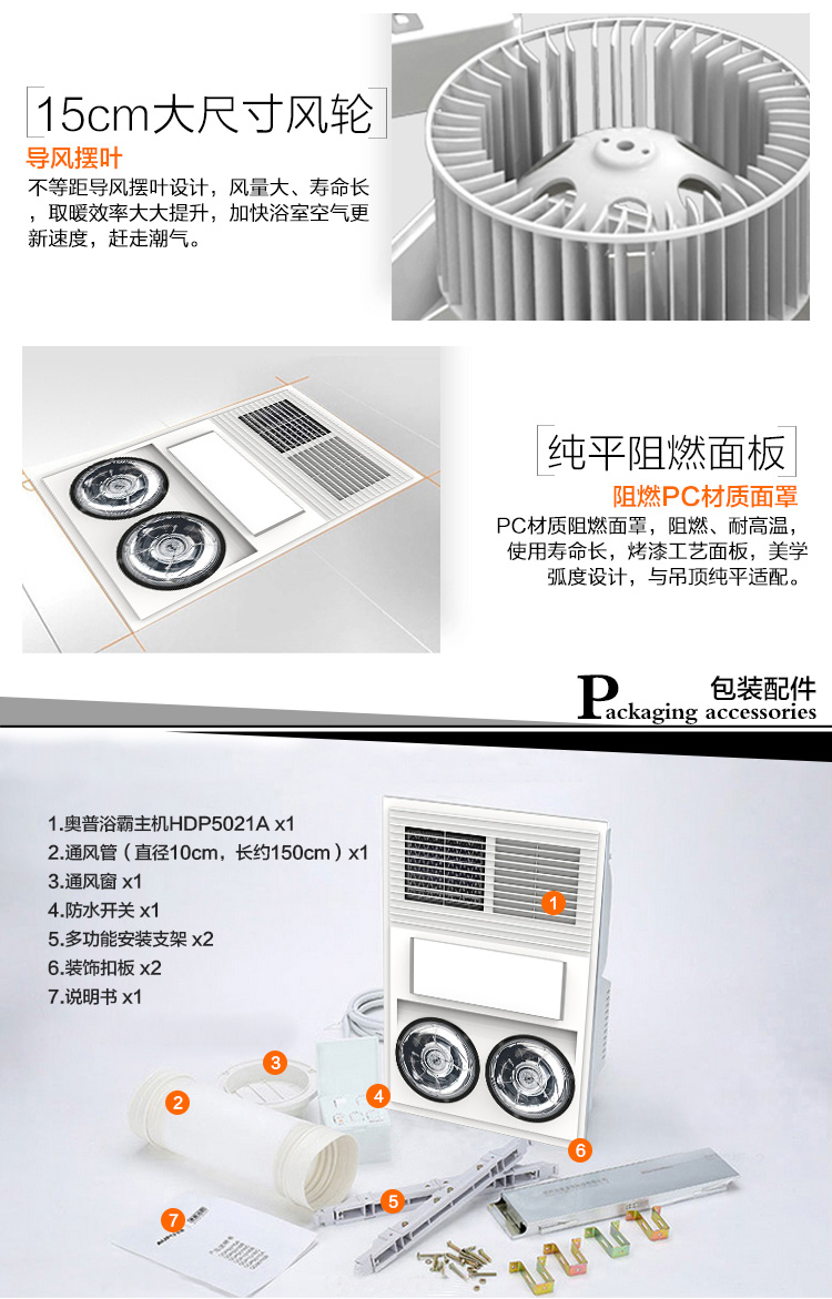 商品名称:奥普/AUPU 白集成吊顶嵌入式风暖灯暖多功能浴霸 HDP5021A