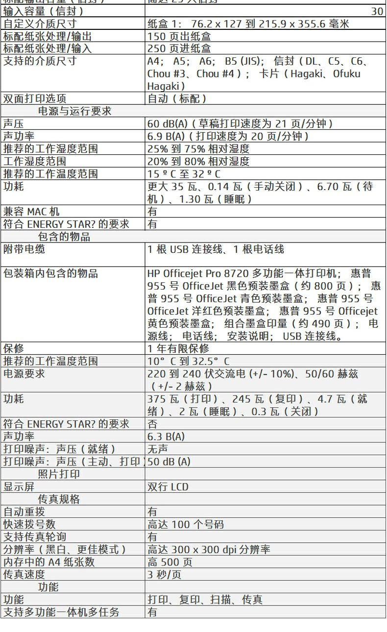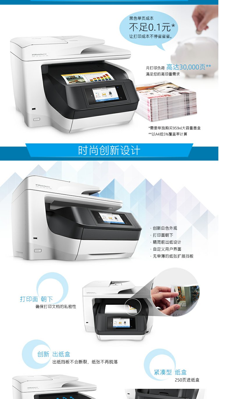 商品名称:惠普/HP 彩色无线打印机复印扫描一体机 自动双面 8720