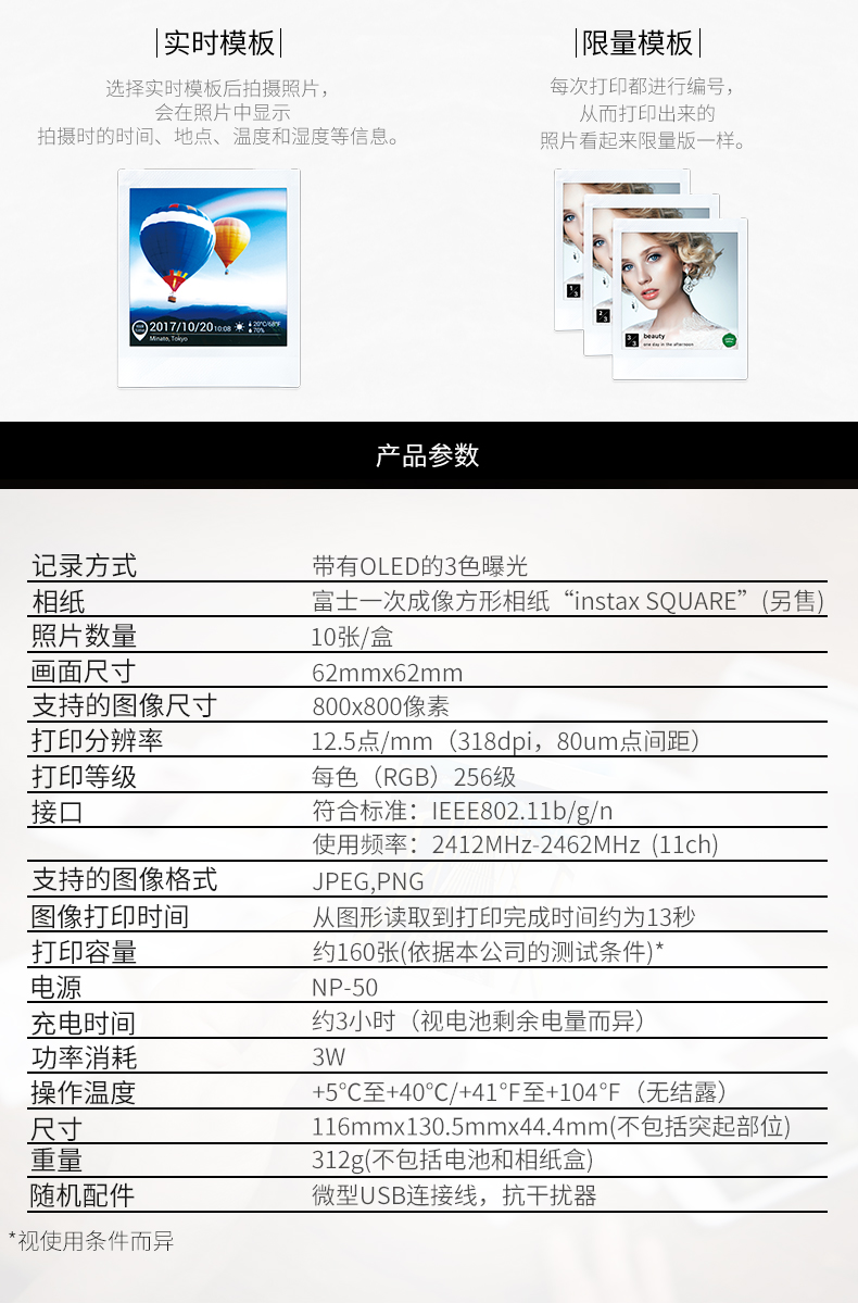 商品名称:富士 迷你小型便携式相片口袋无线打印机 instax SHARE SP-3 SQ