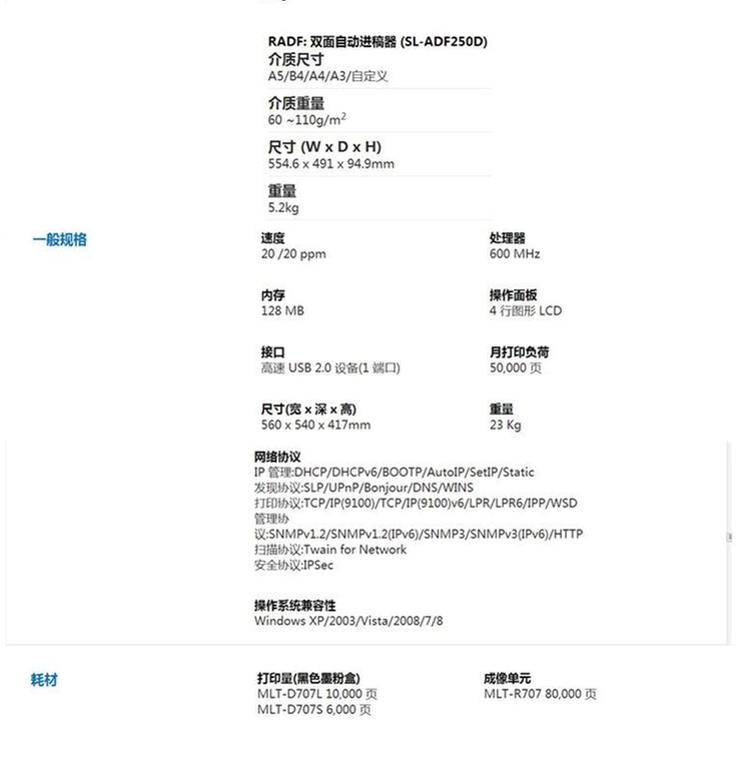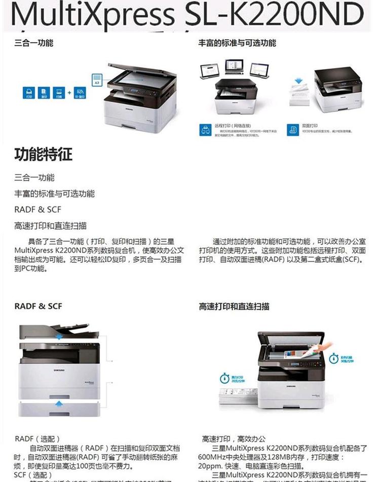 商品名称:三星 黑白激光打印复印扫描双面网络ID复印 K2200ND
