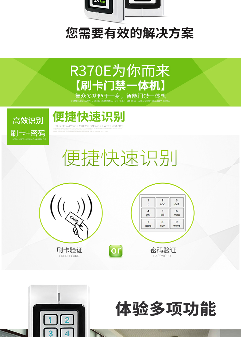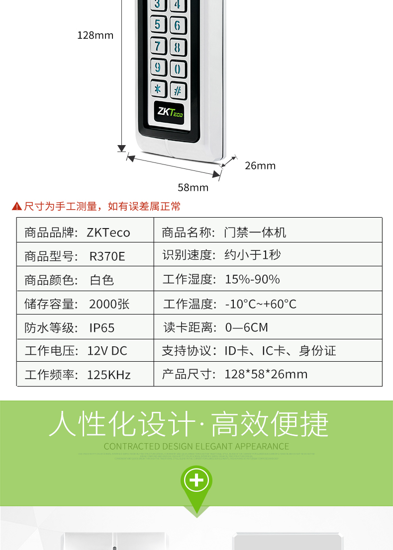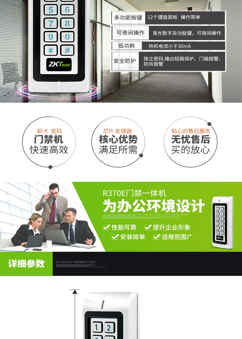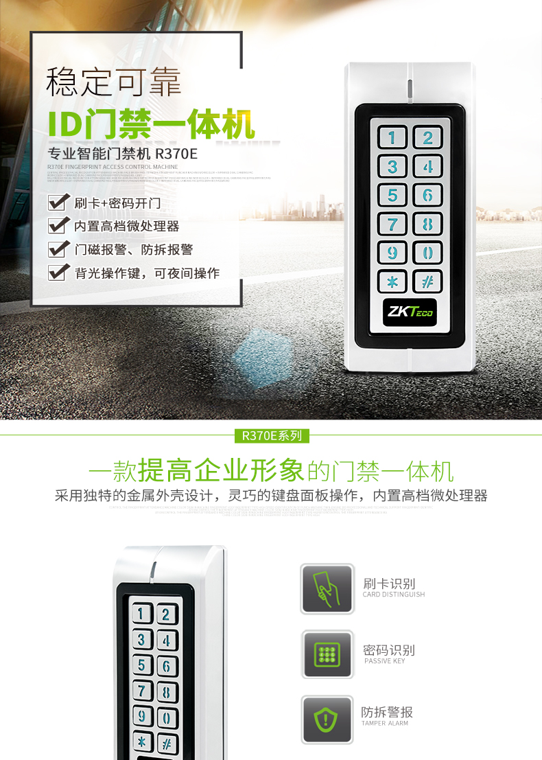 商品名称:中控智慧/ZKTeco 门禁系统ID卡单门门禁一体机门禁主 R370M