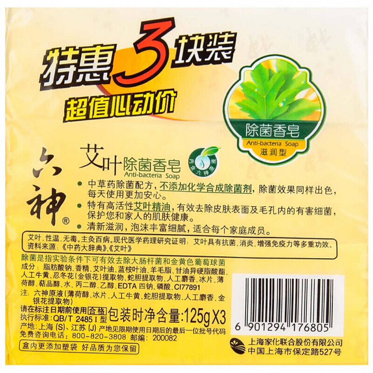 商品名称:六神 艾叶精油除菌香皂【滋润型】125g*3块特惠装洗手