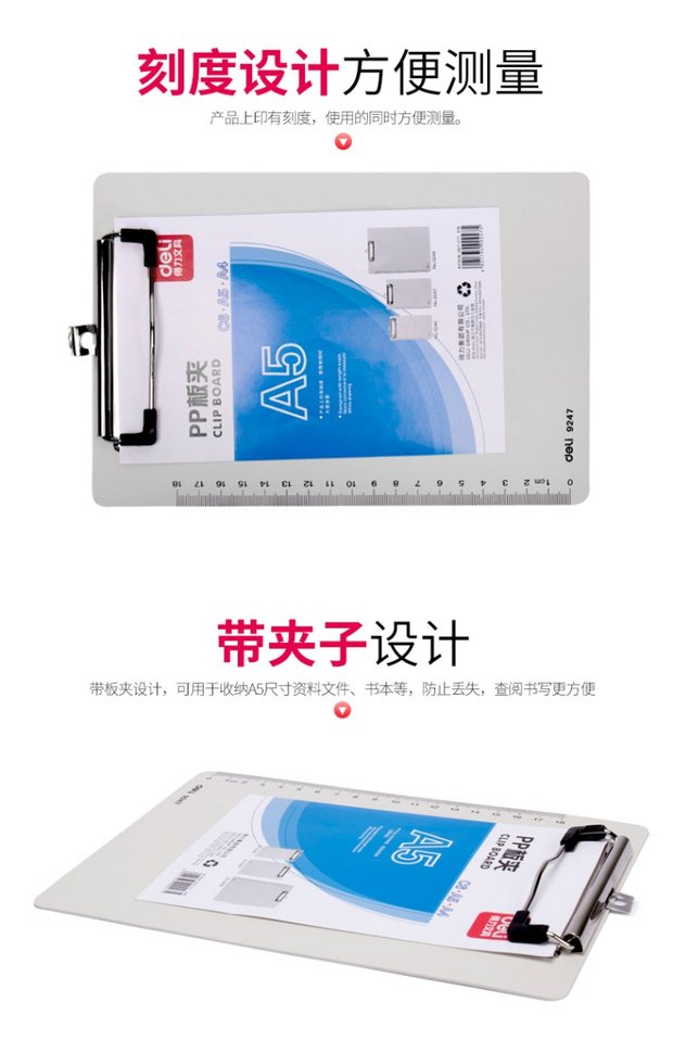 商品名称:得力 9247 书写板夹 PP材质 A5板夹写字板 书写垫板 学生垫板