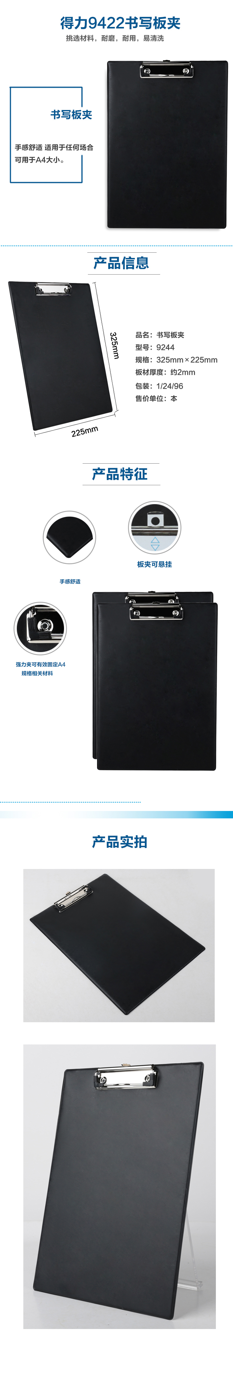 商品名称:得力 板夹9244 A4纸大 垫板 可悬挂资料写字板 办公仿皮文件夹板夹