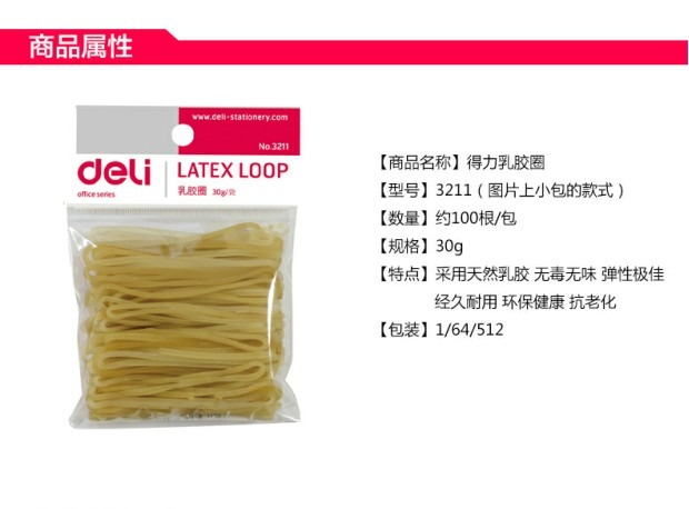 商品名称:得力 3211乳胶圈 橡皮筋 牛皮筋(30g/袋) 100只/袋