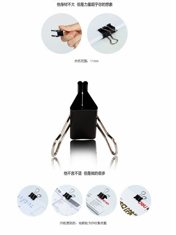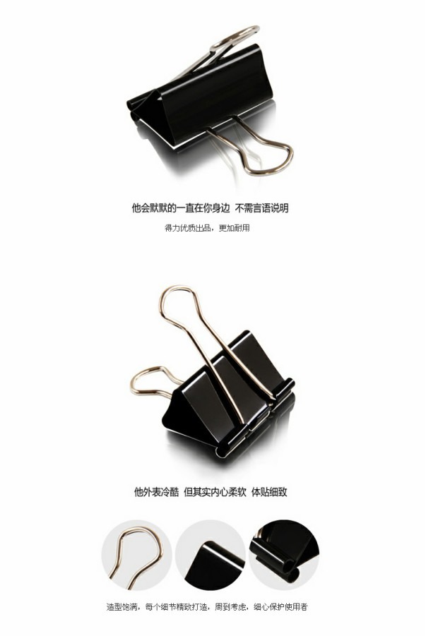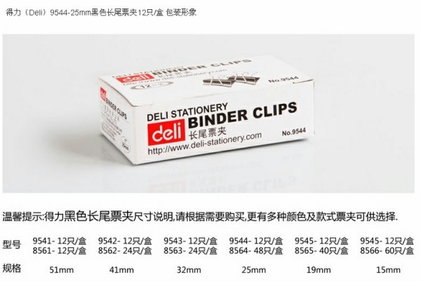 商品名称:得力 长尾夹9544黑色办公燕尾夹25mm学生试卷夹金属强力夹子文具