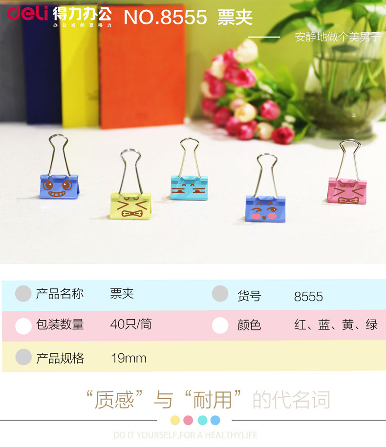 商品名称:得力 票夹19mm 彩色长尾票夹金属燕尾夹学生文具铁小夹子书夹40/桶