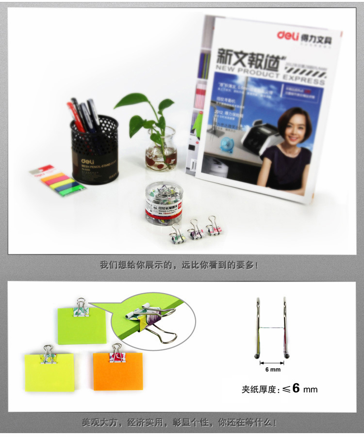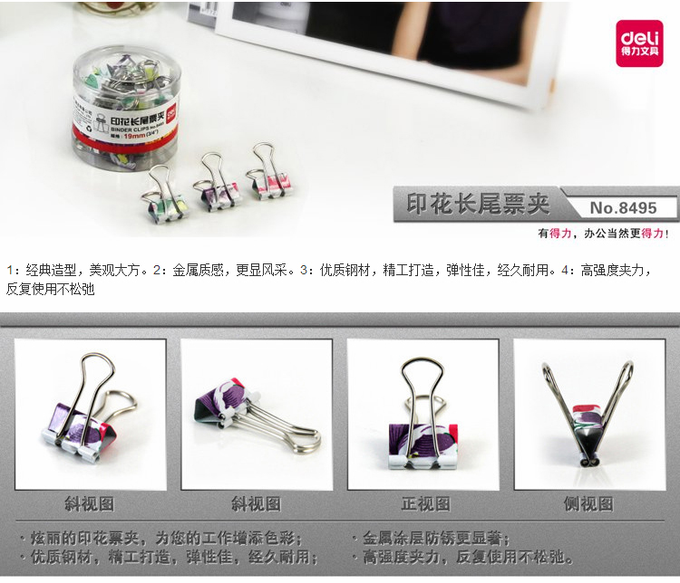 商品名称:得力 19mm印花长尾票夹燕尾夹学习办公用品金属票夹子