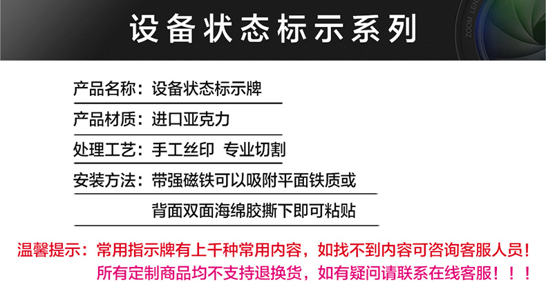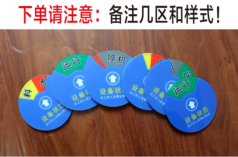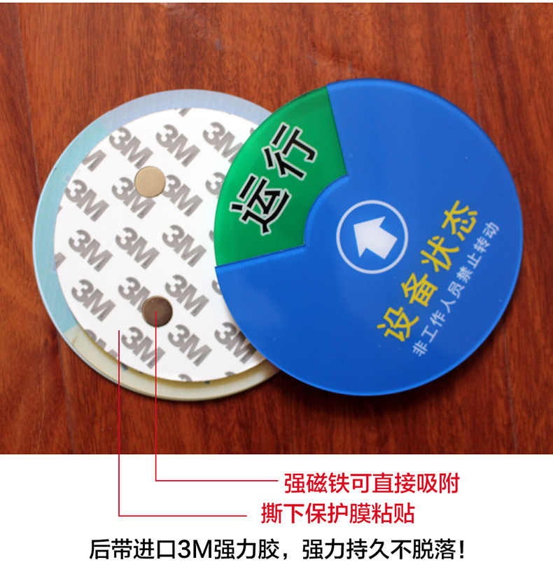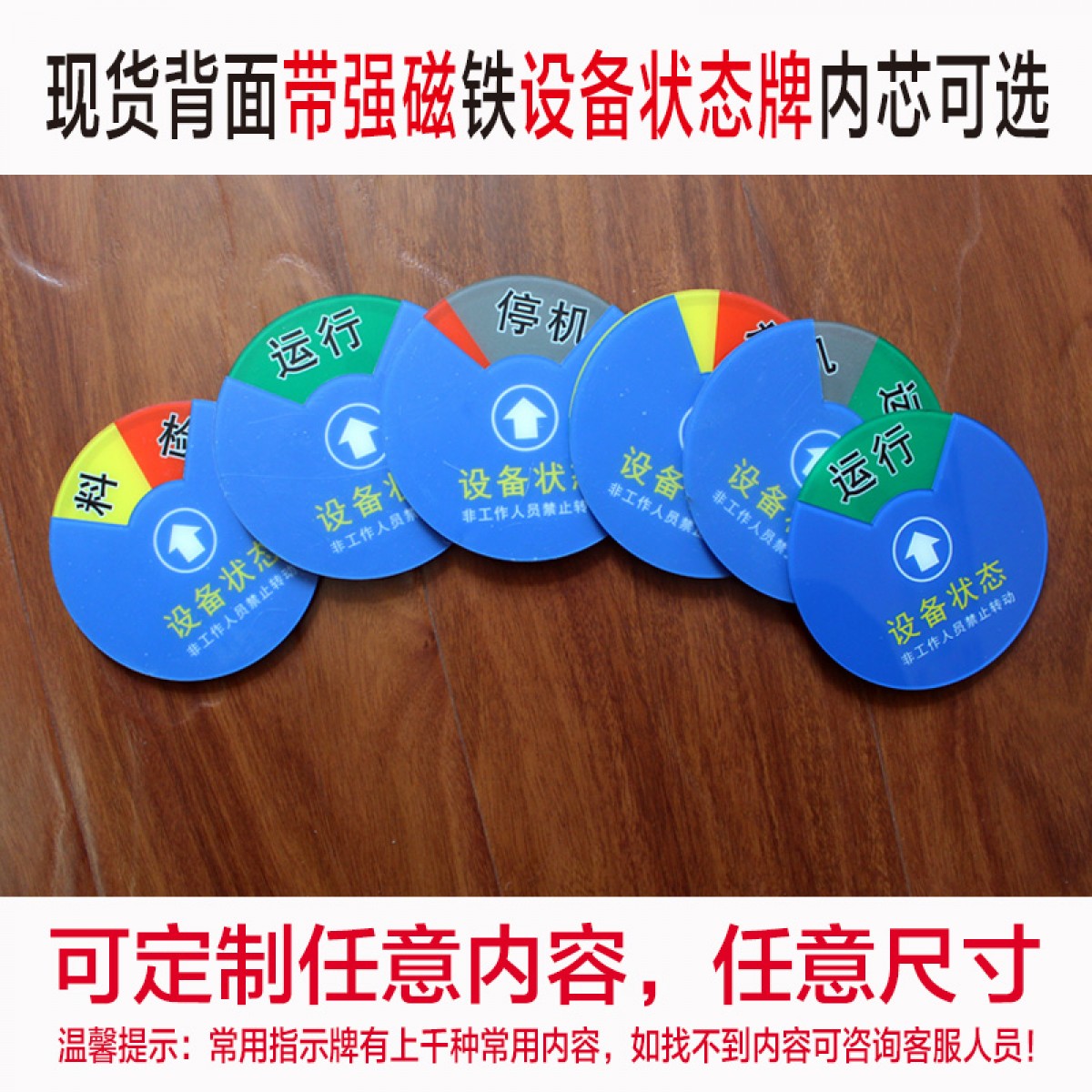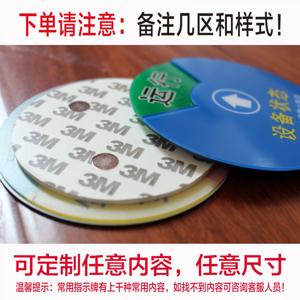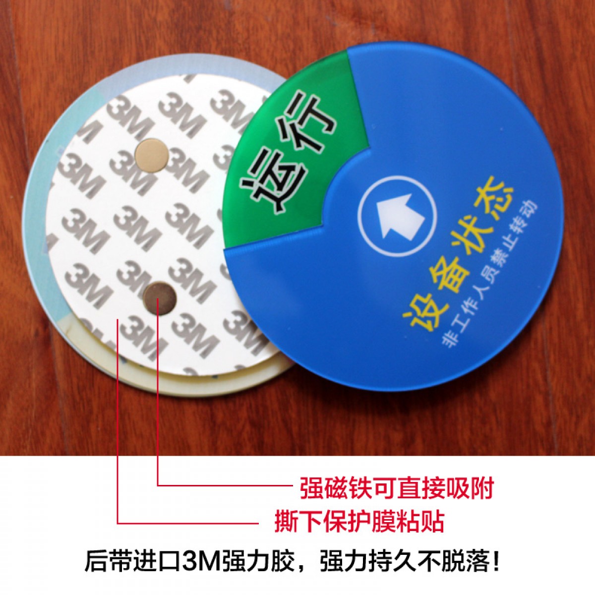 商品名称:国产 圆形设备状态标识牌带3M胶强磁铁旋转设备管理指示牌运行待机开关机台维修管理牌 可定做
